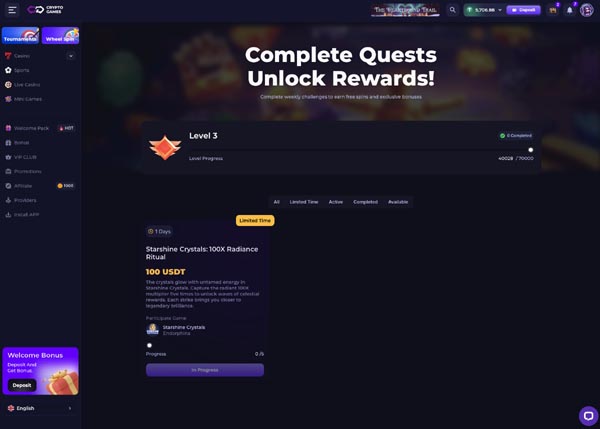 crypto-games.io features an engaging Quest system.