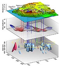 The seismic rumblings could provide key clues about where miners should look for diamonds, according to recent research. Matt Fouch, assistant professor of geological sciences at ASU, studies vibrations caused by earthquakes to visualize the earth at depths of hundreds of kilometers, where diamonds are formed. His maps of the earth below South Africa provide new information about Earth's structure in regions where many diamonds are found. In the July 1, 2001 issue of Geophysical Research Letters, Fouch and his coauthors, David James, John VanDecar (both of the Department of Terrestrial Magnetism, Carnegie Institution of Washington), and Suzan van der Lee (of the Institute of Geophysics, Z�rich, Switzerland), wrote that some of southern Africa's most profitable diamond mines are located near areas where the earth is exceptionally stable and cool up to 250 kilometers below the surface. The paper was published in a special section of the journal, with seven other studies on geochemistry, composition, and rock dating of southern Africa. Many diamonds come from regions, called cratons, that are some of the most geologically stable places in the world. Two cratons, the Kaapvaal and Zimbabwe cratons, covering an area roughly the size of the nation of South Africa, are the source of most of southern Africa's diamonds. "The region we're studying in southern Africa is over 3 billion years old, and in some places it's even 3.6 billion years old," says Fouch. Geologists think diamonds develop up to several hundred kilometers deep within these ancient cratons and are then driven straight up to the surface. Miners scout the best places to dig for gems by looking for diamonds that have made their way to the surface. Other techniques, such as drilling for samples deeper in the rock or studying anomalies in the gravitational or magnetic properties of the earth in the area, increase the chances of finding diamonds. But none of these approaches guarantee success. "If people knew exactly how it worked all the time, then we'd have a lot more diamond mines," Fouch jokes. "Nearly all diamonds come from cratons, but not all cratons contain diamonds. So the question is, why do some cratons produce diamonds and others don't? Another question is, why do some of those areas have diamonds that are commercially profitable, and others don't? Some regions have diamonds, but they're just too chewed up to be gem quality." Fouch and his colleagues think they may have found part of the answer deep in the earth's mantle -- the layer of rock that extends several hundred kilometers beneath the crust. By imaging the earth at these depths, they looked at the very source of diamonds, rather than waiting for them to travel to the surface. Fouch created three-dimensional images of deep layers of the earth by using an array of 82 seismometers, sensors that detect vibrations caused by earthquakes from all around the world. The seismometers, placed at roughly 100-kilometer intervals across South Africa, Zimbabwe and Botswana, recorded data from more than 200 earthquakes occurring over a two-year period, mainly from the Himalayan and Andean mountain ranges. They used seismic tomography, a technique very similar to CAT scans in medical imaging, to produce the images. "As people, we never want earthquakes to happen, but as seismologists we know they are an inevitability. So our job is to use them in the most productive way possible," says Fouch. "Every time an earthquake happens, it's like shining a flashlight on a particular part of the earth. The seismic waves from each earthquake bounce off of different layers of the earth and illuminate different internal features." The speed and angle of earthquake waves' motion depends on what kind of material they travel through. For example, the rippling caused by dropping a pebble in a bowl of water will move differently than in water containing ice cubes or in a bowl of jelly. By analyzing the timing and angle of the vibrations' spread past the seismometers, Fouch and coworkers mapped the physical properties of the earth below. They found that the mantle directly below the most productive diamond mines looks distinctly different than in the surrounding areas. In diamond-producing areas, the mantle is "seismically fast," meaning that it propagates earthquake vibrations quickly because the mantle rock may be cooler or chemically different from the surrounding areas. "There are a few distinct pockets of the faster seismic velocities," Fouch explains. "One of these regions is beneath the Kaapvaal craton in South Africa, and one -- a little more diffuse -- is beneath the Zimbabwe craton. ... Most of the gem-quality diamond mines in southern Africa lie very close to these regions." By looking for similarly cold, seismically fast parts of the mantle, diamond miners may be able to identify new promising areas for mining. Industry collaborators in southern Africa are very interested in Fouch's research, and some even allowed the seismologists to install seismometers on their property. "This is certainly a technique that could be used in conjunction with other methods to possibly determine whether a region might be more prone to having diamonds," Fouch says. Related Links Matt Fouch GRL Paper In PDF Format (675KB) SpaceWar Search SpaceWar Subscribe To SpaceWar Express CARBON WORLDS