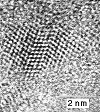 Simulating implantation of noble gases into terrestrial diamond grains, scientists from the Karpov Institute for Physical Chemistry (Moscow, Russia) and the Max Planck Institute for Chemistry (Mainz, Germany) infer a sequence of events in the early life of diamonds in meteorites, the most common form of stardust available for laboratory study (Nature, August 9, 2001). A most exciting event in the study of meteorites has been the discovery that many primitive meteorites contain stardust -- grains of presolar origin, older than the Solar System itself. Formed as circumstellar grains around dying stars, and having survived all subsequent events in the interstellar medium and in the Solar System, they carry information about the processes by which chemical elements are created in stars (nucleosynthesis). In turn, from our concepts about nucleosynthesis we can infer the stellar sources of the grains. Complementing previous analyses of stardust diamonds by the Max Planck group, scientists from the Karpov Institute of Physical Chemistry and from the Max Planck Institute for Chemistry have studied the introduction of diagnostic trace elements into terrestrial analog diamonds. The results are used to draw conclusions about the early history of "stellar diamonds" (Nature, August 9, 2001). Presolar grains known to be present in meteorites are thermally and chemically extremely stable minerals such as diamond, graphite, silicon carbide, corundum (aluminum oxide) and silicon nitride. Although discovered first and by far the most abundant (ca. 1 per mill by weight in the most primitive meteorites), the diamonds are the least understood, and their very identification as being presolar is based on the isotopic composition of trace elements they carry. Noble gases have played a special role among these trace elements, and it is primarily the unusual isotopic composition of xenon -- ca. 100% enrichment of the lightest and heaviest isotopes -- which suggests that they came from supernova explosions. How, when, and where introduction of xenon and other trace elements occurred may provide crucial information on formation and early history of the diamond grains, and there are strong indirect arguments that introduction was by implantation of ions. To test the viability of the process, a simulation experiment was performed: a noble gas mixture consisting of helium, argon, krypton and xenon ions with an energy of 700 electronvolts was implanted into a layer of terrestrial nanodiamonds of similar size as the presolar nanodiamonds (extremely small, only a few nanometer; see figure), and after irradiation the release of the implanted noble gases was studied. Surprisingly, release as a function of temperature was bimodal, with one peak in the 200-700 C range and another one above 1000 C. This situation -- after a single implantation -- at first glance is similar to the case of the meteoritic nanodiamonds, there is a complication, however. In the case of the "stellar" diamonds differences in isotopic composition demand that at least two different events must have been involved in the introduction of noble gases: isotopically unremarkable noble gases are released primarily at low temperature, gases of presumably supernova origin at higher temperature. If indeed, ion implantation is the mechanism by which trace elements were introduced into stardust diamonds and if, as the simulation study suggests, ion implantation results in the gases being located in two different sites within the diamonds of different thermal stability, the following sequence of events seems required: