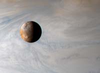 The Galilean satellite Io floats above the cloudtops of Jupiter in a stunning image captured on the dawn of the new millennium, January 1, 2001 10:00 UTC (spacecraft time), and only two days after Cassini's closest approach. But the image is deceiving with over 350,000 kilometers -- roughly 2.5 Jupiters -- between Io and Jupiter's cloud tops. Making for a stunning Jupiter flyby season is the that compared with the Voyager 1 and 2 flybys in the early 1980s, Cassini is passing at a leisurely rate through the Jovian as ut slews a path that is nearly equatorial. Data collection begins with the spacecraft 3.8 degrees above Jupiter's equator plane and approaching the planet from a phase (Sun-Jupiter-spacecraft) angle of 20 deg and a distance of 84.7 million kilometers. From this viewing geometry, Jupiter looks only slightly different than it does from Earth. By the middle of November, the phase angle drops to 18 deg, and the distance decreases to the point where 4 narrow angle camera images will be required to cover the planet. All throughout this period Cassini will be making repeated observations of the atmosphere, and searching for previously undiscovered satellites in the region around Jupiter containing the Galilean satellites. By the middle of December, the phase angle drops to zero, repeated monitoring of the atmosphere ceases, and we begin our observations of the rings and satellites. On December 18, we make our closest approach to Himalia, a small outer satellite of Jupiter. As Cassini sweeps through a large range of phase angle during the rest of the encounter, we monitor the light scattering behavior of the rings and Galilean satellites in a suite of spectral and polarimetric filters. (For a brief time surrounding closest approach, Jupiter is large enough to require 9 images to cover the planet.) And we will be on the lookout for time-variability -- in the rings and in the expected diffuse glows from the tenuous atmospheres of Io, Europa and Ganymede as they pass into Jupiter's shadow. (The Galileo spacecraft first observed such glows, as well as high temperature hot spots, from volcanically active Io.) Ring, satellite and occasional atmospheric observations continue through closest approach and out to January 15, at which point the spacecraft is looking back on a crescent Jupiter from a distance of 18 million km and 3 degrees below the equatorplane. At this time, we return to repeated imaging of the planet as we depart. The last Jupiter images are taken on March 22, 2001. The closest approach distance to the planet is not very close: 136 RJ, or 9.72 million kilometers. Thus, Cassini images will not have the exquisitely high resolution of either Voyager or Galileo images. But the slow pace of the flyby, the large data collection and downlinking capability of the spacecraft, and the wide spectral range and fine photometric precision of the Imaging Science System (ISS), make it possible to acquire high quality time-lapse CCD imagery of Jupiter's ever changing atmosphere extending over several months in a large suite of atmosphere-probing wavelengths, and to search for time-variability in other Jovian targets ... something no previous Jupiter-bound spacecraft has ever done before. To follow the Cassini Jupiter Imaging project visit the Lunar and Planetary Laboratory at the University of Arizona. Related Links SpaceWar Search SpaceWar Subscribe To SpaceWar Express