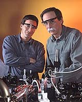 A practical method for automatically correcting data-handling errors in quantum computers has been developed and demonstrated by physicists at the National Institute of Standards and Technology (NIST). Described in the Dec. 2, 2004, issue of the journal Nature, the NIST work is the first demonstration of all the steps of error correction for quantum computers, a futuristic, potentially very powerful form of computing that uses the quantum properties of atoms or other particles as 1s and 0s for processing data. The method was implemented using ions (electrically charged atoms) as quantum bits (qubits). Ions are arguably the leading candidate for use as qubits in a quantum computer. Conventional computers use electronic switches that are either on or off to represent 1s and 0s that then can be stored or manipulated to make calculations. Quantum computing would use the quantum states of matter (such as magnetic properties) as 1s, 0s--or even both at once. The unusual features of the quantum world provide extra computational power, offering the prospect of carrying out a massive number of simultaneous calculations to solve problems that are impossible to solve today. Specific applications could include code-breaking of unprecedented power, faster database searching, fraud-proof digital signatures and optimization of everything from communications systems to airline schedules. But unless data-handling errors are corrected, "noise" caused by environmental disturbances, such as fluctuating magnetic fields associated with electrical equipment, could diminish any gains over today's computers. The new NIST method helps to ensure the correctness of data during computations by creating redundant data sets, or what might be called quantum backup copies. "The basic concept is a familiar one: If someone doesn't understand what you say, you repeat it several times, and eventually they'll get it," explains physicist Dietrich Leibfried, who developed the approach and helped to demonstrate its feasibility in NIST's Boulder, Colo., laboratories. Direct copying of qubits is prohibited by the rules of quantum mechanics, nature's instruction book for the smallest particles of matter. Like all known quantum error correction methods, the NIST method gets around this obstacle by exploiting a famously spooky (the term used by Einstein) feature of quantum mechanics that allows the "entanglement" of physically separated atoms to link their quantum properties in predictable ways. The atoms also are prepared in a special "superposition" state in which they represent both 1 and 0 at the same time. The demonstration used three beryllium ions as qubits. One "primary" ion is entangled with two "helper" ions as part of a series of encoding steps. The primary qubit is essential to the computation; the other two are expendable. Because the three are entangled, errors in one affect the others, a condition that is reflected in the joint quantum state of all three qubits. If the quantum state of the primary qubit is accidentally changed, the mistake can be detected and corrected by reversing the steps to decode the data, and then measuring the values of the two extra qubits. Unlike other demonstrations of quantum error correction, the NIST approach makes corrections based on actual measurements, allows qubits to be "reset" on the fly, and could be scaled up for use in quantum computers of practical size and utility. Previous demonstrations by other groups have involved correction of errors in qubits made of molecules in a liquid, without the ability to measure or reset and reuse the extra qubits needed to detect errors. The ability to "empty the trash bin," rather than simply storing mistakes somewhere in the computer, makes the NIST approach more practical. The NIST error correction process could be incorporated into the programs executed by quantum computers. In principle, the approach could be used to maintain the fragile quantum states of ions or atoms by repeated error correction during data processing, an essential step toward scalable, reliable quantum computers. The same NIST research group previously demonstrated other essential components for a quantum computer based on atomic-ion traps. Error correction is routine in today's computing and communications systems. For instance, a sender might periodically add up a series of sent bit values and transmit the total to the receiver. Once the same bits are received, the values are also summed at the receiver and the two totals are compared. If the totals match, there is a high probability that the bits arrived in the correct state. If the totals differ, then the data were corrupted, and the original bits are re-sent. This approach would fail in quantum information systems because measuring a qubit destroys its quantum state and effectively stops the computation. Therefore, errors need to be detected indirectly, as in the NIST method. It is not necessary to know the value of the primary qubit in order to detect an error and correct it. To verify that the method works, NIST scientists performed many experiments with beryllium ion qubits and compared the corrected quantum states to the initial and uncorrected states. The instrumentation and procedures for manipulating qubits need to be improved to build reliable quantum computers, but such improvements seem feasible, Leibfried says. In addition, more ions and a more complex approach would be needed to correct all possible types of errors. Related Links NIST SpaceWar Search SpaceWar Subscribe To SpaceWar Express