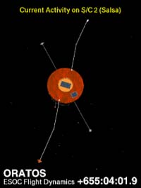 The lengthy deployment sequence began on Tuesday, when the first pair of wire booms on the Salsa spacecraft were released. The deployment started with the firing of pyros to open the protective covers on the four booms. Pulling against a small motor which braked their progress, the wires edged out of their housing at about one centimetre per second.