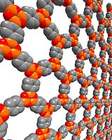 Using building blocks that make up ordinary plastics, but putting them together in a whole new way, University of Michigan researchers have created a class of lightweight, rigid polymers they predict will be useful for storing hydrogen fuel. The work is described in today's (Nov. 17) issue of the journal Science. The trick to making the new materials, called covalent organic frameworks (COFs), was coaxing them to assume predictable crystal structures---something that never had been done with rigid plastics. "Normally, rigid plastics are synthesized by rapid reactions that randomly cross-link polymers," said postdoctoral fellow Adrien Cote, who is first author on the Science paper. "Just as in anything you might do, if you do it really fast, it can get disorganized." For that reason, the exact internal structures of such materials are poorly understood, making it difficult to predict their properties. But Cote and colleagues tweaked reaction conditions to slow down the process, allowing the materials to crystallize in an organized fashion instead of assembling helter skelter. As a result, the researchers can use X-ray crystallography to determine the structure of each type of COF they create and, using that information, quickly assess its properties. "Once we know the structure and properties, our methodology allows us to go back and modify the COF, making it perform better or tailoring it for different applications," said Cote. Cote collaborated on the work with Omar Yaghi, who is the Robert W. Parry Collegiate Professor of Chemistry at U-M. Over the past 15 years, Yaghi has taken a similar approach to producing materials called metal-organic frameworks (MOFs). On the molecular level, MOFs are scaffolds made up of metal hubs linked together with struts of organic compounds. By carefully choosing and modifying the chemical components used as hubs and struts, Yaghi and his team have been able to define the angles at which they connect and design materials with the properties they want. Like MOFs, COFs can be made highly porous to increase their storage capacity. But unlike MOFs, COFs contain no metals. Instead, they're made up of light elements � hydrogen, boron, carbon, nitrogen and oxygen � that form strong links (covalent bonds) with one another. "Using light elements allows you to generate lightweight materials," said Cote. "That's very important for hydrogen fuel storage, because the lighter the material, the more economical it is to transport around in a vehicle. The strong covalent bonds also make COFs very robust materials." Although the main thrust of the current research is creating materials for gas storage in fuel cells, Cote, Yaghi and colleagues also are exploring variations of COFs that might be suitable for use in electronic devices or catalytic applications. "This is the first step to what we think is going to be a very large and useful class of materials," Cote said. Cote and Yaghi collaborated on the research with assistant professor of chemistry Adam Matzger and graduate students Annabelle Benin and Nathan Ockwig, all of U-M, and Michael O'Keeffe of Arizona State University. The work was funded by the National Science Foundation, the U.S. Department of Energy and the Natural Sciences and Engineering Research Council of Canada. Related Links Omar Yaghi Science magazine SpaceWar Search SpaceWar Subscribe To SpaceWar Express