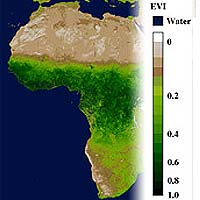 A new collection of Earth science data is now publicly available to advance global studies of how our planet's lands, oceans, atmosphere and life all interact to define our world's water cycle, carbon cycle and climate system. These data are courtesy of the Moderate-resolution Imaging Spectroradiometer (MODIS), flying aboard NASA's Terra satellite. Whereas good MODIS data have been available since November 2000, the newly released data set, called Collection 3, marks a significant step forward in data quality and consistency. "MODIS achieved a steady-state level of operations in November (2000) and since that time we have continued to make every attempt to improve the algorithms," said Team Leader Vince Salomonson, of NASA's Goddard Space Flight Center in Greenbelt, Md. "In June, we decided to provide the Earth science community with a set of consistently processed data products based upon our best efforts at that time." Like a highly advanced digital camera in space, MODIS has been measuring visible and infrared wavelengths from all over our world at multiple scales of time and space since February 2000. MODIS extends the measurement heritage begun by CZCS and AVHRR, and now provides exciting improvements in spectral detail, spatial resolution and accuracy over previous sensors. Collection 3 currently includes three months of data products - March, April and May of 2001 - and is now being expanded to encompass a one-year span from November 2000 to November 2001. These advanced, scientifically useful products are an intermediate step between the earliest beta-quality products and formally validated global data sets. Yet even in this intermediate stage, the team finds its MODIS data are of superior quality and provide an excellent new data set for global change studies. This interdisciplinary collection of Earth science data includes information on more than 40 meteorological, biological and hydrological characteristics of the Earth, including some of the first ever routine, global observations of key Earth science characteristics, such as aerosol concentration over land and enhanced estimates of the effective leaf area of Earth's vegetation. Measurements of ocean temperatures and chlorophyll concentrations reveal more detail and variability than previously seen, while MODIS' chlorophyll fluorescence product adds a whole new dimension to studies of the marine biosphere. MODIS' data products are available at spatial resolutions ranging from 250 meters per pixel, to 1 kilometer, to 1 degree; and range over time from daily, to weekly and monthly global composites. Production of MODIS' data products is divided among the team's three discipline groups: Atmosphere, Land and Ocean. Atmosphere Group Leader Michael King is excited by what he sees in the MODIS data. "We now have the ability to track and characterize aerosol optical properties over land and ocean, globally," he said. "And we have an unprecedented ability to separate small particles that result from human activities and biomass burning from coarse particles that result naturally, such as sea salts and desert dust." According to King, MODIS allows scientists to measure the differences in cloud optical properties for both water and ice clouds. The sensor can characterize the optical thickness of clouds and quantify the size of the particles within them. Moreover, MODIS is the first space-based sensor with a 1.37-�m channel, which is particularly sensitive to high, thin cirrus clouds. Complementing its measurements of the atmosphere, MODIS carries a suite of channels that are particularly well suited for studies of the Earth's land and ocean surfaces. The idea is to observe and measure the interactions of the atmosphere with lands, oceans and life on our world. Another copy of the MODIS instrument will fly aboard Aqua in spring 2002 with an afternoon equatorial crossing to capture the daily variability of the Earth system. According to Land Group Leader Chris Justice, MODIS is the first space-based sensor that enables scientists to remove comprehensively the effects of the atmosphere for relatively unobstructed measurements of the surface. Thus, MODIS' measurements of surface reflectance and radiance are used to generate higher-order data products, such as spectral albedo, enhanced vegetation indices, leaf area index and the fraction of photosynthetically active radiation absorbed by plants, land use and land cover change, fires and burn scars, snow and ice cover and land surface temperature. MODIS sets a new precedent in terms of radiometric data quality, integration of many different algorithms for producing a suite of data products, data validation and quality assurance and improved resolution. "MODIS is capable of showing land cover dynamics - on a global scale, every day, at up to 250 meter resolution - that were not possible before," Justice noted. "It is becoming apparent that MODIS 250-meter data can help advance land research that requires higher resolution and frequent measurements." Among the new products generated from MODIS, the Enhanced Vegetation Index (EVI) product and the Spectral Albedo Product are noteworthy and unique to MODIS. The EVI offers an alternative to the Normalized Difference Vegetation Index (NDVI) measurements and appears to respond better to changes in vegetation as a function of changing climate, changing seasons, land use and differing plant structures. According to Ocean Group Leader Wayne Esaias, MODIS' global 1-kilometer resolution sea surface temperature and ocean color (chlorophyll) products are an order of magnitude better than the same measurements made by precursor sensors. "The details and patterns in MODIS' bio-optical and sea surface temperature distributions is astounding," Esaias stated. "For the first time, we can see correlations between the physics and biology of the ocean at spatial scales that just weren't available to us before. MODIS also offers improved approaches for chlorophyll