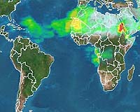 Dust from the Sahara Desert in Africa may help modify clouds and rainfall both in Africa and across the tropical North Atlantic, as far away as Barbados, according to a study that uses 16 years of data from NASA satellites, ground measurements and computer models. The dust particles act as surfaces, or kernels, for water vapor to attach to in low clouds, and for ice crystals to form around in higher clouds. The study's authors, Natalie Mahowald, a researcher at the National Center for Atmospheric Research, Boulder, Colo., and University of California, Santa Barbara (UCSB), and Lisa Kiehl, a graduate student at UCSB, believe the interaction between clouds and aerosols is critical for understanding climate change. Clouds play a pivotal role in reflecting and absorbing the Sun's rays. Clouds also absorb and reflect radiation emitted from Earth's surface. The dust and cloud interplay also helps explain rainfall patterns over the Sahara Desert and south of that area. In low clouds such as cumulus and stratocumulus clouds, near the Sahara desert, water attaches to the dust particles. Higher dust concentrations can suppress rainfall and enhance drought conditions, by dispersing water among the dust particles, so that water droplets are not heavy enough to fall. This creates more thin low clouds, and less rain. In high clouds, such as cirrus, cirrostratus, and deep convective clouds, there is some evidence that dust particles over wetter regions south of the desert provide surfaces for ice crystals to form around. These ice crystals grow rapidly, drawing moisture from surrounding cloud droplets, become heavier and fall, generating more rain and reducing the total amount of high clouds. Dust from North Africa, where the desert lies, has blown increasingly into the atmosphere since the 1960s. Though the reasons for this are not clearly understood, some scientists believe the increase may be linked to human activity. The study, which appeared in a recent issue of Geophysical Research Letters, used 16 years of monthly mean observations from satellites, ground stations, and computer models to look at the relationship between dust particles in the air, called mineral aerosols, and cloud properties. Data on how many and how thick clouds were, and cloud top pressure and temperature, came from NASA's International Satellite Cloud Climatology Project (ISCCP). ISCCP data covered 1984 to 1999 and combined Advanced Very High Resolution Radiometer (AVHRR) data from 3 satellites created and launched by NASA, including GOES-8, GOES-10, and GOES-12. The study also used data from the Total Ozone Mapping Spectrometer (TOMS) instrument to determine the amount of radiation being absorbed by aerosols between 1984 and 1990. Data from the ground in Barbados was collected by the University of Miami. This is the first long-term regional study to confirm observations that mineral aerosols in both low and high clouds can act as kernels for precipitation to form around. It is also the first study to suggest that African dust interacts with clouds over a large region. The study found a positive correlation between low altitude cloud amounts and dust at the coast of North Africa, which supports the theory that dust particles act as a place for water droplets to form around in thin low clouds. The researchers also found a negative association between high clouds and dust along the equator across North Africa and the Atlantic Ocean. That is, more dust creates heavy ice particles in high clouds that rain down and ultimately reduce high cloud amounts. Still, since there are no long term ground measurements for dust and high clouds in these areas, and because it has been hard to measure these high clouds with satellites, it is difficult to make firm conclusions regarding ice forming around dust kernels, high clouds and rainfall. Related Links Total Ozone Mapping Spectrometer SpaceWar Search SpaceWar Subscribe To SpaceWar Express