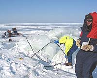 The northernmost part of the Baltic Sea, between Finland and Sweden, recently provided an ideal location for scientists to successfully address critical issues relating to sea ice validation before CryoSat is launched in September. Unlike last year's CryoSat Validation Experiments (CryoVEx 2004), which focussed on land ice and took place in Greenland and the Canadian Arctic, the recent validation activities in the Baltic scrutinised issues relating to sea ice. The experiment examined the possible sources of error that could arise in the sea-ice thickness maps that will be generated using data from ESA's ice mission CryoSat. Errors can arise, for example, where a snow layer is present on top of the sea ice. The weight of the snow tends to push the ice floes lower into the water, so that CryoSat, which translates the height of the ice surface above the waterline into ice thickness data, would underestimate the true thickness of the ice. Validation campaigns, thus, form a critical component of the whole mission; they provide the only means to reach a comprehensive assessment of how accurate CryoSat-derived ice thickness maps are. Contributing to this aspect of the mission, an intensive two-week validation campaign was successfully carried out during March in the frozen Bay of Bothnia, which lies in the northernmost arm of the Baltic Sea. The campaign involved scientists from a number of institutes, namely, the Finnish Institute of Marine Research (FIMR), the Alfred Wegner Institute (AWI) from Germany, the Helsinki University of Technology (HUT), the Scottish Association of Marine Research (SAMS) and the Swedish Institute of Meteorology and Hydrology (SMHI). Ground and helicopter measurements were performed from the research vessel Aranda. The CryoSat validation activities were co-funded by ESA together with the National Technology Agency of Finland (TEKES) and other national and European sources. In this coordinated effort, valuable information on sea ice properties and CryoSat validation measurements were collected from the surface of the ice, and from the air using the AWI Dornier 228 and HUT SC7 Skyvan aircrafts. From the air, 1600 kilometres of data were collected over the Bay of Bothnia and from several altitudes along a calibration line that was established close to the island of Hailuoto. The calibration line covered ice of varying thickness, from as little as 19 centimetres to as much as 20 metres and also included ice featuring different topography, from the smooth and level to very rough ridged forms. In addition, a helicopter suspending an electromagnetic sensor known as EM-bird, took many kilometres worth of ice thickness measurements underlying the airborne flight path. This will be compared with ice thickness data derived using the radar altimeter on board the aircraft to determine overall accuracy. The most arduous task was undoubtedly collecting the ground measurements at various points along the calibration line. Snow thickness and snow properties were measured and holes were drilled through the ice to measure the thickness.