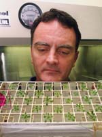 Gainesville - May 8, 2001 In what reads like a story from a 1950s science fiction magazine, a team of University of Florida scientists has genetically modified a tiny plant to send reports back from Mars in a most unworldly way: by emitting an eerie, fluorescent glow. If all goes as planned, 10 varieties of the plant could be on their way to the Red Planet as part of a $300 million mission scheduled for 2007. The plant experiment, which is funded by $290,000 from NASA's Human Exploration and Development in Space program, may be a first step toward making Mars habitable for humans, said Rob Ferl, assistant director of the Biotechnology Program at UF. Ferl and a team of molecular biologists chose as their subject the Arabidopsis mustard plant. They picked it, Ferl said, because of three attributes that make it ideally suited for the Mars mission: Its maximum height is 8 inches, its life cycle is only one month and its entire genome has been mapped. Moreover, in December 2000 it became the first plant to have its genetic sequence completed. To create the glow, the team will insert "reporter genes" into varieties of the plant, which will express themselves by emitting a green glow under adverse conditions on Mars. Each reporter gene will react to an environmental stressor such as drought, disease or temperature. For example, one version will glow an incandescent green if it detects an excess of heavy metals in the Martian soil; another will turn blue in the presence of peroxides. In fact, one of the reporter genes itself is somewhat otherwordly, having come from the depths of the ocean. "What makes the plants glow blue is a protein derived from an incandescent jellyfish whose DNA is spliced into the mustard plant," Ferl said. "The implanted DNA then synthesizes the iridescent blue protein in the plant, which expresses itself under stress." Ferl's team, in collaboration with Andrew Schuerger, a manager of Mars projects at the Kennedy Space Center-based Dynamac Corp., is competing with other biologists to receive the NASA contract for the Mars trip. But both men, who also are professors at UF's Institute of Food and Agricultural Sciences, have worked with NASA before. In 1999, Ferl sent 40 reporter-gene plants into orbit aboard the space shuttle. On that flight, gravity had an adverse effect on the plants' ability to utilize water, a condition called "space adaptation syndrome." The scientists are using that experience to engineer smarter plants. "Just like humans, plants must learn how to adapt to a new environment," Ferl said. "We are using genetics to create plants that have the ability to give us data we can use to help them survive." The 2 1/2-year Mars mission -- nine months traveling 286 million miles each way and one year stationed on the planet -- would work like this: The seeds of the plant would make the trip aboard a spacecraft similar to NASA's Mars Odyssey, which was launched April 7. Upon arrival, the landing vehicle's robot would scoop up a portion of Martian soil, and the scientists will analyze it using the robot and a specialized camera. After modifying the soil with fertilizers, buffers and nutrients, the scientists will germinate the seeds and grow the plants in a miniature greenhouse on the landing vehicle. Despite working with alien soil they know little about, the biologists are optimistic about the experiment. "I'm confident we can grow plants if we know the pH levels and the oxidizing agents in the Martian soil," Schuerger said. "We'll test the soil before planting, and then we can raise or lower pH, flush excess salts and add nutrients as needed." As for long-term plans, Ferl and Schuerger have worked together on a concept called "terra-forming" or "ecosynthesis," which would use plants to reduce the carbon dioxide in the Martian atmosphere and produce oxygen for life processes. Although the plants are genetically engineered to detect -- and then adapt to -- certain environmental stressors, terra- forming presents additional obstacles. Schuerger said that on Mars, daily temperatures range from a high of 45 degrees Fahrenheit at noon to a low of minus 170 degrees at night. Also, the planet's moisture content is 0.3 percent, which is extremely low. But Ferl, Schuerger and the rest of the team are taking all bettors. "I have no doubt that we can get plants to survive on Mars," Ferl said. "When we do, we will have shown that Earth-evolved life is capable of thriving in distant worlds, and we will have set the stage for human colonization." Related Links Ferl Lab at UoF SpaceWar Search SpaceWar Subscribe To SpaceWar Express