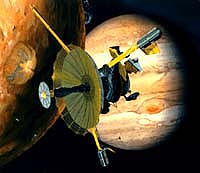 by Bruce Moomaw Cameron Park - July 3, 2000 - Despite all the incredible travails of the early parts of its career -- delays of 8 years in its launch and 11 years in its arrival at Jupiter, the failure of its high-gain antenna that reduced its data rate 10,000-fold (until frantic and revolutionary work by ground engineers raised it back by a factor of 100), the sticky tape recorder that almost ruined the remainder of the mission -- the Galileo spacecraft, since it actually arrived in orbit around Jupiter 4-1/2 years ago, has shown remarkable and stubborn staying power. It was designed to endure Jupiter's ferocious radiation belts -- a very destructive environment for solid-state electronics -- for a two-year orbital mission. But at the end of that time, having shown virtually no sign of radiation damage, it was then given the go-ahead for an additional two-year extended mission during which it carried out eight flybys of Europa and then two daring incursions into the inner regions of the radiation belts -- where they are over a dozen times more intense than at Europa -- in order to fly by Io and make the observations that had to be cancelled during its first Io flyby on the day of its arrival at Jupiter due to the tape recorder problem. During that second mission, it again came through in good -- though not perfect -- shape, despite having to endure one unexpected and mysterious "storm" of radiation during one orbit last August that was several times more intense than any such dose anyone had ever anticipated. The temporary radiation-caused electronic "safing" events that fouled up two of its eight Europa flybys were successfully eliminated by new software in time for the Io flybys; other new software worked around radiation-caused problems with its attitude-sensing gyros; and the only science instruments to suffer were the UV spectrometer (which finally failed completely) and the near-IR mapping spectrometer (whose spectral scanning ability suffered a breakdown that has ruined its ability to map the composition of surface materials, although it can still make detailed temperature maps). Since it was still ticking, it was given permission for a further one-year extension of its mission, which it has now half completed -- making one more flyby each of Io, Europa and Ganymede, and showing absolutely no sign of further damage. It is now partway through a very elongated orbit around Jupiter -- far outside the dangerous part of the radiation belts -- which will take it fully 20.7 million kilometers from the planet. It will finally return to Jupiter's vicinity for another Ganymede flyby on Dec. 28 -- while that moon is shrouded in the darkness of an eclipse by Jupiter, in order to study the surprisingly bright auroras generated by Ganymede's own unexpected magnetic field. Only two days later, it will monitor one part of Jupiter's huge magnetosphere at the same time that the Cassini Saturn spacecraft makes a distant flyby of Jupiter and makes simultaneous measurements of another part of the magnetosphere, providing great new insights into the complex "weather patterns" of that magnetosphere.
