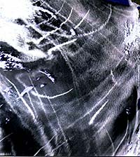 Boulder - March 9, 2000 - Rosenfeld used data taken by Advanced Very High Resolution Radiometers onboard several U.S. weather satellites and NASA's new TRMM satellite for his Science study. The images showed pollution tracks caused by urban and industrial activity in areas of Turkey, Australia and Canada, as well as data indicating clouds making up the pollution tracks were prohibiting rain and snow from falling downwind from the sites. Since each cloud droplet must form on a pre-existing particle, additional aerosols in clouds like sulfates or sulfuric acid increase the number of water droplets in clouds, said Toon. Because temperatures and atmospheric motions driving cloud formation control the mass of water condensing in the clouds, the droplets formed on aerosol particulates tend to be smaller in size. Clouds harboring smaller droplets have larger surface areas, making them more reflective and sending more sunlight back to space, said Toon. Because of their diminutive size, the chances of the droplets coagulating into raindrops large enough to fall as precipitation are greatly diminished. A typical microscopic cloud droplet can travel little more than an inch through dry air before evaporating. "About 1 million cloud droplets must collide and coalesce in order to form a precipitation-sized drop," said Toon, who noted that a typical raindrop -- which is about the size of a rice grain -- can fall a mile before evaporating. The rate at which droplets collide and coalesce depends on their size and the number of other similar droplets in their path, he said. Normal-sized droplets in an unperturbed cloud would sweep up about 64 times the volume of air containing other droplets than would droplets half that size inside a polluted cloud. This would make the aerosol-filled cloud much less likely to rain, said Toon. One of Rosenfeld's satellite images shows a pollution track emanating from a mining and smelting company in Flin-Flon, Manitoba. Another shows pollution tracks from several sources near Istanbul, Turkey. A third image shows a track originating in the vicinity of a brown coal power plant, the world's largest smelter and refinery, a huge cement plant and a major oil refinery near Adelaide, South Australia. Other areas of the world are at least as tainted with aerosols. But pollution tracks from huge, nearly adjacent cities such as those in the Northeast United States, for example, are virtually invisible because of the perpetual pollution that hangs in the atmosphere, he said. "Rosenfeld's work points to locales where in situ observations should be made to pinpoint the mechanisms by which pollution affects clouds," Toon concluded in Science article. "Such knowledge may allow us to estimate how widespread the aerosol interaction with cloud precipitation may be in our globally polluted world," added Toon.