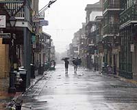 New Orleans, Louisiana (AFP) Sep 04, 2005 The bars of the Big Easy prided themselves on staying open come rain or shine but only one kept serving through the Hurricane Katrina crisis. "We don't have any locks on the door," said Julie Sprinkel, a server at Johnny White's Sports Bar on the normally raucous Bourbon Street. Pitch dark but for a few candles, the laughter could be heard along the street, famed for its alcohol-fueled debauchery, which on a normal night would have been flooded with hordes of hedonists decked out in cheap Mardi Gras beads. The warm beer did not bother the regulars who have stayed faithful since Hurricane Katrina hit the city on Monday which was followed by flooding, looting and widespread pillaging. Bourbon Street largely escaped the floods that hit after New Orleans levees were breached. And in the first days, a few stranded tourists also wandered in to sample the warm beer that became the drink of the day after the power went off and the refrigerators stopped working. "Whatcha need, darling, you're all right?" the gruff bartender called out to a sweaty customer as he squeezed into her line of sight. "Something cool, like bourbon," he answered. Johnny White's has been an island of normalcy in a city shattered by hurricane anarchy and the stench of death. The tiny joint sits squarely on the corner of Bourbon and Orleans where alcoholics and derelicts mix with a steady stream of yuppies and tourists who play at slumming it. The doors are wide open. Nearly a week after the disaster there are not many people walking by to notice. Those that do have stories to tell. Lisa Smith, 41, is slumped on a bar stool, nursing a rum and coke -- and a huge gash on her side. "I was floating on a couch drinking Budweiser," she told a friend who walked in as she began to tell the tale of how she escaped the floodwaters and made it back to her home away from home in the French Quarter. Smith's story was interrupted by cheers which broke out when a man walked in with a cooler of ice. "Don't get too excited, I'm hoarding this for myself," Sprinkel joked as she lit another cigarette and leaned on a stool behind the bar. Sprinkel's only reason for keeping the bar open was habit. She definitely did not seem to be doing it for the money. She was only charging four dollars for mixed drinks and two dollars for beer. "I could be making 1,000 dollars in six hours easy," she said. "It's not right. I'm not going to gouge. Everybody here is local." It's the spirit of the French Quarter, Smith explained. "We'll stop partying in a couple of days because everyone will run out of money." All rights reserved. � 2005 Agence France-Presse. Sections of the information displayed on this page (dispatches, photographs, logos) are protected by intellectual property rights owned by Agence France-Presse. As a consequence, you may not copy, reproduce, modify, transmit, publish, display or in any way commercially exploit any of the content of this section without the prior written consent of Agence France-Presse. Related Links SpaceWar Search SpaceWar Subscribe To SpaceWar Express