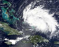 Miami (AFP) Sep 19, 2005 Authorities on Monday ordered Florida's Key West evacuated amid fears Tropical Storm Rita would become a strong hurricane and raised the possibility of another exodus from devastated New Orleans. US President George W. Bush warned the storm could cause levees to break if it does eventually hit near New Orleans, where engineers are still battling to repair floodgates smashed by Hurricane Katrina on August 29. The likelihood of Rita barreling over the oil-rich Gulf of Mexico also sent world crude prices surging Monday. Rita pounded islands of the southern Bahamas Monday morning and was expected to strengthen into a hurricane later in the day. Forecasters said it could eventually reach category three on the five-level Saffir-Simpson hurricane intensity scale. While the Bahamas, Cuba and southern Florida were the most immediately threatened, with Texas at risk over the weekend, hurricane experts warned there was also a possibility the storm might make slam ashore near New Orleans. Bill Doran, the operations division chief for the Louisiana Office of Homeland Security said that authorities were keeping a close eye on Rita. "If we had an event come towards New Orleans, I believe we would get more water in the area," he said adding: "You would have to evacuate at about 72 hours from landfall to have an effective evacuation." He said as many as 30,000 people, most of them national guardsmen and relief workers, might need to be evacuated if Rita were to strike the US Gulf Coast areas recovering from Katrina's wrath. Officials already ordered the evacuation of Key West and nearby areas in the Florida Keys, a chain of islands linked to the mainland by a series of bridges and a single road. The storm could hit the area late Tuesday or early Wednesday on its way to the Gulf of Mexico. Miami, 350 kilometers (220 miles) away, as well as areas further north were also on alert. Florida Governor Jeb Bush, a brother of the US president, warned residents not to underestimate the threat of the storm. "We've been watching the effects and the tragedies that unfold after Hurricane Katrina and its awesome force," he said, adding: "I urge people to take this storm seriously." The US National Hurricane Center forecast a track that would have the storm just skirting the Bahamas, Cuba and Key West in Atlantic waters and eventually making landfall in Texas over the weekend. But experts warn that hurricanes are highly unpredictable and a so-called "cone of probability" in the forecast covers a huge swath of the US Gulf Coast, stretching from northeastern Mexico to the swamplands of southern Louisiana just west of New Orleans. Should the storm land west of New Orleans, the city would find itself on the so-called "dirty side" of the hurricane, where winds are the most powerful. "There is deep concern about this storm causing more flooding in New Orleans," the US president said. "And again, if it were to rain a lot, there is concern from the Army Corps of Engineers that the levees might break." Rita sent jitters on global oil markets amid fears of further disruption of crude production in the US Gulf, which had been severely affected by Hurricane Katrina. New York's main contract, light sweet crude for delivery in October climbed more than four dollars to 67.25 dollars per barrel in electronic trading Monday. At 2:00 p.m. (1800 GMT) Rita was 600 kilometers (380 miles) east-southeast of Key West, and packed near-hurricane strength winds of 115 kilometers per hour (70 mph.) Meanwhile, another storm, Hurricane Philippe, was swirling 585 kilometers (385 miles) east of the Leeward Islands and looked set to remain over the open waters of the Atlantic. All rights reserved. � 2005 Agence France-Presse. Sections of the information displayed on this page (dispatches, photographs, logos) are protected by intellectual property rights owned by Agence France-Presse. As a consequence, you may not copy, reproduce, modify, transmit, publish, display or in any way commercially exploit any of the content of this section without the prior written consent of Agence France-Presse. Related Links SpaceWar Search SpaceWar Subscribe To SpaceWar Express