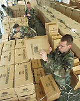 Two members of the Combat Feeding Directorate were awarded for their contributions to the introduction of radio frequency identification to the Defense Department. Gerald Darsch, Combat Feeding director, and Kathy Evangelos, Combat Feeding program integrator, were presented with the Office of the Secretary of Defense Award for Excellence by Alan Estevez, assistant deputy undersecretary of Defense for Supply Chain Integration, in a ceremony in Washington D.C., July 28. As a result of their early efforts, the Defense Department was able to quickly adopt and deploy this technology to revolutionize military supply chain management, military logistics and readiness. "Your vision played a critical role in the adoption of this technology. The Defense Department would not be where it is today if it were not for your dedication and perseverance in bringing this to the highest levels of the Defense Department," Estevez said. Radio frequency identification technology provides automated, real-time logistics and information on Class 1 and other classes of supply for the Defense Department. It's based on the electronic product code, which is a unique number that identifies a specific item in the supply chain. Passive radio frequency identification tags composed of a microchip holding an electronic product code and an antenna that receives an radio frequency signal are attached to a unit of supply, such as a pallet. Powered by a reader, the tags emit a radio signal that transmits the electronic product code and other information back to the reader. Sensor integration on tags provides the capability to monitor the status of an item, pallet or container by detecting any number of variables, such as temperature, vibration, rough handling and chemical biological contamination. During the ceremony, Estevez cited the implementation of radio frequency identification in March 2005 to support Marine Corps Forward Operating Bases in Iraq. The Marine Corps has reduced inventory from $127 million to $70 million, reduced wait time from 28 to 16 days, increased fill rates from 77 percent to 89 percent, and reduced retail backlog from 92,000 to 11,000 orders. These innovations and accomplishments were facilitated partly by the new Defense Department radio frequency identification policy published in July 2004. The Defense Department Combat Feeding Radio Frequency Identification Team provided significant lessons learned to drive the policy and move the Defense Department forward by providing consultation and influence on both the Defense Department and commercial implementations of radio frequency identification. Related Links Combat Feeding Directorate, U.S. Army Soldier Systems Center SpaceWar Search SpaceWar Subscribe To SpaceWar Express