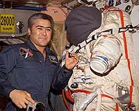 The Expedition 10 crewmembers are marking their 100th day in space today, ending a workweek focused on preparations for their first spacewalk Jan. 26. Commander Leroy Chiao and Flight Engineer Salizhan Sharipov are scheduled to leave the Pirs Docking Compartment airlock at 2:25 a.m. EST Wednesday. Most of their spacewalk tasks involve outfitting the outside of the Zvezda Service Module. They will install a work platform, mount a robotics experiment, check vents on systems that help control the Station's atmosphere and install a scientific experiment. After completing the work outside Zvezda, they will move back to Pirs. Outside the docking compartment, they will install an experiment that examines the impact of spaceflight on microorganisms. They are expected to re-enter Pirs and close the hatch about 8 a.m. EST. Sharipov and Chiao completed one spacewalk prerequisite this morning. Both did the required cardiovascular evaluation exercise using one of the Station's bicycle-like devices. They also did leak, valve and pressure checks on their Orlan spacesuits and the Orlan interface units in Pirs, completed suit communications checks and did a review of the spacewalk plan with flight controllers in Moscow. Spacewalk activity earlier in the week included spacesuit battery charging Tuesday, as well as preparation of spacewalk hardware and tools. They spent three hours staging equipment and tools on Wednesday. Yesterday they activated and tested the suits. Both suits have red stripes. Chiao will be distinguishable by a U.S. flag on his shoulder. The spacewalk will be broadcast live on NASA Television, beginning at 1 a.m. EST Jan. 26. Coverage will continue through the end of the spacewalk. On Jan. 15 flight controllers raised the Station's altitude by about five-and-one-half miles in a 20-minute reboost using engines on the Progress cargo spacecraft docked at the rear of Zvezda. That was done to put the Station in the proper orbit for the arrival of the next Progress on March 2. For much of the week, flight controllers conducted vibration and current tests on one of the 600-pound control moment gyros (CMGs) that control the orientation of the Station. The CMGs normally operate at 6,600 rpms, but can be operated at 15 other speeds. The test involved running CMG 2 at each of those speeds for four hours. The CMGs use solar power. Three of the four on board are functioning, though the Station's attitude could be controlled with two. The CMG, which failed in mid-2002, will be replaced on the next Shuttle mission. On the science research front, Chiao performed a status check of the Miscible Fluids in Micro Gravity experiment. During his Saturday science program last weekend, Chiao photographed honey and honey/water syringes used to study the viscosity of molten materials. Understanding this is important for everything from designing laboratory experiments to industrial production of materials. Scientists on Earth have been concerned about crystallization of the honey, which occurred in the last Space Station increment. The experiment's principal investigator wants to verify the status of the test articles before any operations during this increment. The best way to accomplish this is by photographing the honey-filled syringes for ground review. The experiment uses fluids with known viscosities such as honey, corn syrup, glycerin and silicone oil. One way to determine viscosity is to measure how long it takes two spheres of liquid to merge into a single spherical drop. On contact, a neck will form between the two drops, increasing in thickness until the two drops become one single sphere. On Earth, gravity distorts liquid spheres, and drops are too heavy to be supported by strings. Drop distortion should not occur in the Space Station's low gravity environment, and the drops can be held on strings. Related Links ISS at NASA SpaceWar Search SpaceWar Subscribe To SpaceWar Express