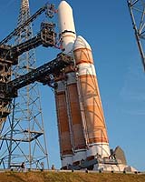 Cape Canaveral (SPX) Nov 02, 2004 America got its first look at the new, fully-stacked Delta IV Heavy launch vehicle on Oct. 27 when the mobile service tower rolled back at Space Launch Complex 37B. Members from various agencies, including Boeing, the Air Force and news media representatives, witnessed historic event here - a major milestone in the Air Force's Evolved Expendable Launch Vehicle program. The massive launch vehicle stands nearly 235 feet high and will carry a demonstration payload on its inaugural mission, currently scheduled for next month. The payload will weigh over 6.5 tons, simulating the weight of a heavy payload, said Lt. Col. James Planeaux, Delta IV program manager, Space and Missile Systems Center, Los Angeles Air Force Base, California. "The whole mission will be demonstrated in anticipation of future heavy lifts for national security payloads," Lt. Col. Planeaux said. Boeing and the Air Force have worked hand-in-hand since the inception of the project and look forward to a successful mission, he said. The 5th Space Launch Squadron, a unit of the 45th Space Wing, located here helps process and launch EELVs. "We scrutinize the contractors launch processes and procedures by participating with them as they plan each mission and prepare the rocket for launch, and by engaging with the launch team during the countdown," said Lt. Col. Robert Atkins, 5th SLS commander. He explained the significance of the upcoming launch. "The Air Force Heavy Demonstration mission will be the first launch of a Delta IV Heavy configuration, essentially three liquid-fueled rockets flying 'in formation,' " he said. "This booster is critical for our nation's security because it will enable us to launch our heaviest DoD and national reconnaissance satellites after Titan IV retires." The Delta IV Heavy is made up of three conventional Delta IV rockets strapped together. Each rocket has a RS-68 hydrogen-fueled engine, which generates 17 million horsepower, equivalent to 11 Hoover dams. Each rocket engine produces about 758,000 pounds of thrust at lift off. The EELV program has created more affordable spacelift for both commercial and military payloads. "This is the first rocket engine designed specifically for value," said Michael Costas, RS-68 program director in Canoga Park, Calif. "Each rocket consumes one ton of propellants per second equating to about five tanker trailers per minute," he said. Related Links SpaceWar Search SpaceWar Subscribe To SpaceWar Express