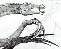 Imagine a one-ton Big Bird a la Sesame Street, but instead of friendly "hands," he has Freddie Claws. That's basically what the Therizinosaurid dinosaur looks like that geologist David Gillette's team from the Museum of Northern Arizona (MNA) found in Kane County, Utah. "This is a one ton plant-eating carnivore with really bizarre claws," said Gillette. "It had slender arms and really long bones in the hand with bladed claws that look like sickles. With the sheath, the claws are about 15 inches long." In 2001, Gillette's crew found an almost complete skeleton, which is a rare find. Some Therizinosaurid remains found in China caused quite a stir because they were found with feather-like structures on them. The idea that these creatures were among the ancestors of birds has been gaining increased acceptance. Gillette will present a preliminary report on their discovery May 7 at the Geological Society of America Rocky Mountain Section Meeting at the Southern Utah University campus. He will also report on another uncommon find�skin impressions of a duck-billed dinosaur known as a Hadrosaur. Gillette's group found the impressions while excavating the dinosaur's tail in the new Grand Staircase-Escalante National Monument (GSENM) in Kane County. "This is the second reported discovery of skin impressions in Utah," Gillette said. "On the global scale, however, this is a rare occurrence. This was a great discovery, especially in the context of the Hadrosaur with an articulated tail--that means the bones were still connected--that extended from the base of the tail (at the hips) to near the tip, about 13 feet long. In addition, the tendons that in life held the tail rigid were still preserved in life position." The Grand Staircase-Escalante National Monument is about two million acres large and much of it is exposed and eroded rock, so fossils are usually only found in unrecognizable bits and pieces. But the MNA discovery was different. "The rear half of the body was in beautiful state of preservation and in articulation. The discovery of the skin impressions came during the excavation, to our great delight and surprise," Gillette said. "I would describe the skin as pebbled, with radiating grooves in each bump. The bumps were polygonal, nearly equilateral diamonds, pentagons, and hexagons. This texture surely added strength and toughness to the skin, which in turn would resist decay following death and burial. The carcass did not decay much prior to burial, but had to be desiccated to resist decomposition by bacteria--that is, the local environment must have been very dry." Scott Sampson from the Utah Museum of Natural History will provide updates on his and his team's discoveries from GSENM at the same May 7 session as Gillette�"Paleontological Research in Grand-Staircase Escalante National Monument and Surrounding Area." Their findings include two previously unknown horned dinosaurs (ceratopsians), a partial skull of a dome-headed dinosaur (pachycephalosaur), a partial skeleton of a large-bodied tyrannosaur that is the first tyrannosaur from this time period in Utah, and the remains of two previously unknown giant crocodiles. Research for this project was funded by GSENM as part of a collaborative paleontological survey. "Given how little is known of the dinosaurs from GSENM, chances are high that most of the dinosaur remains represent species new to science," Sampson said. "Now the goal is to find enough of each of these ancient beasts to establish that they do represent new species. Our efforts and those of others over the past several years suggest that GSENM has perhaps greater potential to yield new and interesting kinds of dinosaurs than any other region in North America." Based on different types of Late Cretaceous plants and animal discoveries in Montana and Alberta versus those found in New Mexico and Texas, Sampson and others speculate that Utah may be an important boundary area between two major "biozones." "To really understand this paleoecological story, however, will require a good record from the Late Cretaceous of Utah," Sampson said. "And GSENM will provide that record." Brent H. Breithaupt, from the University of Wyoming's Geological Museum, will take a look at what he calls "Theropod family values" via a "live-action" glimpse of their lives through intensive study of over 1,000 dinosaur tracks at the Red Gulch Dinosaur Tracksite in northern Wyoming. He will present his report May 8 at the Stratigraphy, Paleontology, Paleobotany, Archaeological Geology, and History of Geology session at the meeting. "We have evidence of gregarious carnivorous dinosaurs. These are groups of animals moving together," Breithaupt said. "Trace fossils such as tracks are unique in that they actually preserve the activities of ancient animals. In addition, as we have a very large and statistically valid database we can make some unique interpretations. This is important as evidence for gregarious carnivorous dinosaurs is relatively rare." Using data from a variety of resources including aerial photography of the entire tracksite and close-range photogrammetric images of a single track, Breithaupt and his co-authors speculate there were family groups, ranging from yearlings to adults, interacting near their nesting area by a shore. "The data also suggest a certain level of parental care and the level of dependence of the young dinosaurs, as we have juveniles traveling with adults" he said. "From what we know about dinosaur growth, it appears that they grew at the same rates as some modern ground birds such as ostriches and emus. "If our dinosaurs represent animals of different ages of the same species then the smallest ones can't be very old--a year or perhaps less. Little animals of this sort probably aren't going to travel long distances during the first year. "Thus, they were probably relatively near a large ground nesting area. If we accept the paradigm of theropod dinosaurs being similar to mod