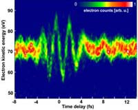 The human eye can detect changes in the intensity of light, not however the wavelength because light oscillates too fast (approximately 1000 trillion times per second). An international collaboration led by Ferenc Krausz and made up of researchers from the Vienna University of Technology, the Max-Planck-Institute for Quantum Optics and the University of Bielefeld have recently succeeded in developing a technique which can measure the instantaneous electric field of red light (quarter period ~ 620 attoseconds) and record its variation with a resolution of 100 attoseconds (Science, August 27, 2004). The experiment of the Austrian-German team allowed the first direct visualization of the electric field of visible light and constitutes the fastest measurement to date. It has been known since the famous experiments of Heinrich Hertz near the end of the 19th century that light is a wave consisting of electric and magnetic fields, just as radio waves and microwaves. The only difference is in the number of times these fields change their direction in a second. In radio and microwaves this happens typically millions to trillions times per second. The field variation in these waves can be readily detected by turning it into electric current and displaying the variation of this current in electronic instruments called oscilloscopes. In striking contrast, the electromagnetic field of visible light changes direction approx. one thousand trillion, i.e. 1 000 000 000 000 000, times per second, so that the instantaneous intensity of the light field varies from zero to maximum faster than a femtosecond (1 femtosecond being one thousandth of a trillionth of a second), some ten thousand times more rapidly than the resolution of the fastest electronic instruments available to date. Recording the field variation of visible light calls for an oscilloscope that exhibits a temporal resolution of several hundred attoseconds (1 attosecond being a thousandth of a femtosecond). The researchers recently succeeded in developing a technique which can measure the instantaneous electric field of red light (quarter period ~ 620 attoseconds) and record its variation with a resolution of 100 attoseconds. The key to this measurement was the generation of single 250-attosecond extreme ultraviolet pulses, a feat achieved by the same collaboration a few months ago (Nature, February 26, 2004). The attosecond extreme ultraviolet pulse knocks electrons free from atoms to probe the electric field of a wave consisting of only a few cycles of red laser light. The electric field of red light accelerated or decelerated the electrons set free with respect to the light wave with a 100-attosecond timing precision. The change in the electrons� energy (shown in units of electron volts, eV, in Fig. 1), measured as a function of delay (shown in units of femtoseconds, fs, in Fig. 1) between the attosecond pulse and the laser light wave clearly exhibits the build-up and disappearance of the laser pulse within a few femtoseconds as well as oscillations with a period of the 2.5-fs wave cycle of 750-nm (red) light. The measured energy change directly yields the variation of the instantaneous strength and direction of the electric field of the few-cycle light wave (Fig. 2). The red line in Fig. 2 depicts the electric field of a few-femtosecond flash of red light, as recorded by an apparatus that can be regarded as the first attosecond oscilloscope. The new technique permits direct and accurate measurement of ultrabroad-band light pulses (made up of many different colours), and thereby opens the door to the reproducible synthesis of ultrashort flashes of light with arbitrary waveform for a number of applications including the development of molecular electronics and X-ray lasers. Related Links Vienna University of Technology Max-Planck-Institute for Quantum Optics University of Bielefeld SpaceWar Search SpaceWar Subscribe To SpaceWar Express THE speed of light, one of the most sacrosanct of the universal physical constants, may have been lower as recently as two billion years ago- and not in some far corner of the universe, but right here on Earth.