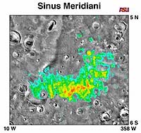 NASA Space Science Scientists think Mars has a bad case of rust. Martian soil is full of iron-bearing compounds that, over the eons, have reacted with trace amounts of oxygen and water vapor in Mars' atmosphere to form iron oxide -- the same chemical that covers innumerable rusty nails in garages and workshops on Earth. The word "rust" conjures up images of things that are red --like Mars and old nails-- but not all iron oxide is the same color. Here on Earth a gray-hued variety of iron oxide, a mineral called hematite, can precipitate in hot springs or in standing pools of water. Gray hematite is not the sort of rust you might expect to find on a desert-dry planet like Mars. But perhaps Mars wasn't always as dry as it is today. There are many signs of ancient or hidden water on the Red Planet including flash-flood gullies, sedimentary layers ... and hematite. In 1998, an infrared spectrometer on NASA's Mars Global Surveyor (MGS) spacecraft detected a substantial deposit of gray hematite near the Martian equator, in a 500 km-wide region called Sinus Meridiani. The discovery raised the tantalizing possibility that hot springs were once active on Mars. "We believe that the gray hematite is very strong evidence that water was once present in that area," said Victoria Hamilton, a planetary geologist at Arizona State University (ASU). "We think the deposit is fairly old. It was buried, perhaps, for several hundred million years or more and now it's being exposed by wind erosion." Gray hematite has the same chemical formula (Fe2O3) as its rusty-red cousin, but a different crystalline structure. Red rust is fine and powdery; typical grains are hundreds of nanometers to a few microns across. Gray hematite crystals are larger, like grains of sand. "Red and gray iron oxides on Mars are really just different forms of the same mineral," explained Hamilton. "If you ground up the gray hematite into a fine powder it would turn red because the smaller grains scatter red light." The coarse-grained structure of gray hematite is important, says ASU's Jack Farmer, head of the NASA Astrobiology Institute's Mars Focus Group, because "to get that kind of coarsening of the crystallinity, you would need to have a reasonable amount of water available" where the hematite formed. The link between water and gray hematite makes the so-called "Hematite Site" (Sinus Meridiani) an alluring target for future Mars landers as well as for remote sensing instruments on the 2001 Mars Odyssey spacecraft -- slated to launch on April 7th. Odyssey will carry an infrared imaging camera called THEMIS (short for Thermal Emission Imaging System) that can identify surface minerals from orbit by analyzing their spectral "fingerprints." "It turns out that all materials vibrate at the atomic scale," explains Hamilton. "For minerals, the rate at which the atoms vibrate corresponds to the thermal infrared part of the electromagnetic spectrum, between about 5 and 50 microns. Those are longer wavelengths than what our eyes can see." Every mineral has a unique infrared spectrum that identifies it as surely as the fingerprints of a human being, she added. THEMIS is a "next-generation" instrument that can capture sharper images than TES, the Thermal Emission Spectrometer that is orbiting Mars now aboard Mars Global Surveyor. THEMIS will be able to discern the mineral content of geological features only 100 meters across, compared to 3 km for TES. Of many candidate landing sites for NASA's 2003 Mars Exploration Rovers, the Sinus Meridiani region is one of the most intriguing to scientists. THEMIS data could help planners pinpoint the best places to land, especially if the maps reveal deposits of other aqueous minerals such as carbonates or sulfates. "The interesting thing about carbonates and sulfates," says Phil Christensen, principal investigator for THEMIS, "is that these materials can be better (than hematite) at preserving a fossil record. Some of them, like carbonates, would also indicate that standing bodies of water were present on the surface." Hematite minerals, on the other hand, might have been formed by hydrothermal water deep underground. So far, instruments on MGS have found no direct evidence for carbonates or sulfates anywhere on Mars. The absence of such aqueous minerals is a mystery if liquid Martian water -- in the form of lakes, rivers or oceans -- was indeed abundant in the planet's geological past. Christensen cautions that the spatial resolution of TES on Mars Global Surveyor might not have been good enough to detect small deposits of carbonates. With its superior resolution, THEMIS has a better chance. For example, TES would not have detected the carbonate layers in Earth's Grand Canyon, but THEMIS would. Until someone finds signs of carbonates or sulfates on Mars, perhaps in some future THEMIS image, gray hematite remains the best known mineral signpost for ancient Martian water. The hematite makes scientists wonder, was there once a of Martian equivalent Yellowstone National Park where steaming hot springs formed hematite-laden pools? And are underground springs still present there today? Human exploration of the Red Planet could hinge on the answers. And there may be no better place to find out than Sinus Meridiani, where the lure of hematite is powerful indeed. Related Links Mars Global Surveyor Thermal Emission Spectrometer SpaceWar Search SpaceWar Subscribe To SpaceWar Express