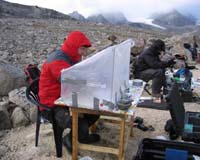 "To detect life on Mars, we have to devise instruments to recognize it and design them in such a way to get them to the Red Planet most efficiently," said Dr. Andrew Steele of the Carnegie Institution's Geophysical Laboratory, a member of an international team* designing devices and techniques to find life on Mars. "We've passed a major milestone. We successfully tested an integrated Mars life-detection strategy for the first time and showed that if life on Mars resembles life on Earth at all, we'll be able to find even a single-cell," he remarked. Steele is part of the interdisciplinary, international Arctic Mars Analogue Svalbard Expedition (AMASE) team, which is creating a sampling and analysis strategy that could be used for future Mars missions where real-time decision-making on the planet surface will be needed to search for signs of life. Their two-stage strategy involves an initial analysis of the surface to find good target sites and then subsequent collection and analysis protocols to study the samples. Because its geology is much like Mars, this year's AMASE team just completed a two-week fieldwork expedition in the challenging environment of Bockfjorden on the Norwegian island of Svalbard, which at close to 80o N has the world's northern-most hot springs above sea level. The AMASE team, led by Dr. Hans Amundsen of Physics of Geological Processes (PGP), University of Oslo, Norway, deployed a suite of life-detection instruments in the frigid Arctic environment, including two spectroscopic instruments deployed by Dr. Pamela Conrad (of JPL and a Carnegie visiting investigator), and Dr. Arthur Lane (of JPL). The instruments are highly sensitive to certain organic and mineralogical markers, or fingerprints, and have the capacity to identify local "hot spots," which are likely to be good targets for finding life. These instruments were tested on hot-spring deposited carbonate terraces containing rock-dwelling (endolithic) bacteria, and within lava conduits on the Sverrefjell volcano. This volcano is currently the nearest terrestrial analogue to the processes that produced features (Carbonate rosettes) that have been found in the Martian meteorite ALH84001. The Carnegie team** led by Dr. Steele, deployed a suite of specially adapted off-the-shelf instruments to rapidly detect and characterize low levels of microbiota. The results of the tests can be used for independent validation, and to cross check among the instruments for greater information than any instrument can yield on its own. Field analysis also allows real-time understanding of the environment, thus permitting the scientists to gather pertinent samples and test hypothesis with minimal sample disturbance. The suite of instruments included standard genetic techniques to identify and characterize bacterial populations (Polymerase Chain Reaction or PCR); a highly sensitive instrument to detect cell wall components (a PTS unit, which was developed by Charles River, and Norm Wainwright of MBL); an instrument to measure cellular activity by analyzing the flux of the energy-storing molecule ATP; and most significantly, protein microarrays. Protein microarrays are capable of testing for the presence of many hundreds or even thousands of molecules simultaneously. These molecules are not limited to large proteins or cells--smaller molecules i.e., amino acids and nucleotides, the building blocks of life on Earth, can also be found. The Carnegie team has pioneered the use of this technology, principally for life-detection for Mars missions, and has recently been advocating its use in astronaut health and environmental monitoring for long-duration human space flight. "This expedition marks the first time these arrays have been used in the field," commented Dr. Jake Maule of Carnegie, who was responsible for this aspect of the research. Initial results indicate that the team was able to maintain sterile conditions and that the positive results from the protein arrays correlate with PCR, PTS and ATP analysis, as well as the spectroscopic techniques deployed by JPL. Samples are currently being tested further in the Carnegie labs to verify the field data, and additional expeditions are planned to refine the strategy, technology, and remote operation over the next three years. The long-term aim of the project is to fully characterize the geology and biology of the Bockfjorden area, to understand the role of biology in the formation and weathering of carbonate deposits that are the only known terrestrial analogue to those found in Martian meteorites. This project will also allow verification of sample acquisition and analysis in simulations at Svalbard, and future missions to Mars and Europa. Related Links Carnegie Institution Mars Rovers at JPL SpaceWar Search SpaceWar Subscribe To SpaceWar Express