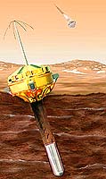 Moreover, if it's launched in 2003, the Lander would also have at least two more possible Mars orbiters to relay its data back to Earth: the 2003 European Mars Express orbiter, and the first American "Mars Micromission" -- a small craft scheduled for launch in 2003 as the first element in an entire network of Mars-orbiting comsats to drastically improve the radio link between future Mars landers and Earth.