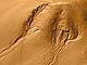 by Bruce Moomaw Cameron Park - June 30, 2000 - In my previous report, I described one theory (the so-called "salty soda fountain" concept) being used to explain the startling new photos by Mars Global Surveyor which seem to show signs of recent eruptions of groundwater out of near-surface strata on Mars -- and in the coldest regions of Mars, at moderate to polar latitudes and usually on slopes facing away from the Sun. But there are rival theories -- in which the "springs" aren't springs at all. In one of these (currently favored by Dr. Jeffrey Kargel of the U.S. Geological Survey in Flagstaff, Arizona), the gullies are indeed due to water runoff, but from something even more spectacular in its implications than subsurface springs -- namely, the intermittent accumulation and melting of thick layers of surface ice on Mars. This would be due to the same "obliquity cycle" which I used in the previous report to explain the "intermittent soda fountain" theory of the runoff gullies, but operating in a different way. As I said in my previous report, Mars' "obliquity" -- the tilt of its spin axis -- is known to slowly increase and decrease between about 15 degrees and 35 degrees over a 124,000-year cycle (unlike Earth's tilt, which slowly rocks through a range of only 4 degrees thanks to the stabilizing tuggings of our large Moon). Indeed, recent studies suggest that occasionally -- at intervals of a few tens of millions of years -- Mars' obliquity may swing from 0 degrees all the way up to 60 degrees. (Thus Mars sometimes joins Uranus and Pluto as the only planets that "lie on their side".) At present -- by sheer chance -- Mars is about halfway through one of its obliquity cycles, at a tilt of about 25 degrees. Kargel's theory makes use of what happens to Mars' climate during these cycles. He agrees with many other planetologists that the planet has large subsurface deposits of water ice near its surface in some regions fairly near the poles (not to mention the water-ice polar caps themselves). In his model, as Mars' axial tilt increases, the warmth of each polar region's summer naturally increases -- and this causes much of its water ice to "sublimate" (evaporate directly from ice into vapor), greatly increasing Mars' atmospheric humidity. But much of this increasing atmospheric water vapor then freezes back onto Mars' surface as snow or frost each winter -- and while most of this winter ice cover naturally evaporates back into the air each summer, there are some patches of Mars' middle and high latitudes that remain cold enough on a year-round basis that the new surface ice steadily accumulates there (the so-called "cold traps"). To quote Kargel: "It is likely that favorable sites would be dependent on latitude, time within the obliquity cycle, elevation, slope, slope aspect [heading], and proximity to local reservoirs of ice, e.g., frozen crater lakes." Meanwhile, despite the planet's increasing tilt, Mars' equatorial regions remain warm enough that almost no such patches of accumulating ice can build up there. These patches of accumulating surface ice may, in some regions, get very thick indeed as thousands of high-obliquity summers and winters pass: "25,000 years of accumulation at 1 centimeter per year would amass to 250 meters, and local accumulations of kilometers of ice are possible." As Mars' obliquity -- and thus the warmth of its polar summers -- increase still more, however, the second stage of the process starts: some of the accumulated patches of surface ice become as much as 20 deg C warmer. And the increased warmth of the polar regions has another important effect (recognized by almost all Mars researchers): a great deal of carbon dioxide stored underground -- either as frozen dry ice, a "clathrate" mixture of CO2 with water ice, gaseous CO2 that has been "adsorbed" by Mars' soil (that is, chemically stuck to tis grains), and perhaps even underground liquid CO2 under pressure -- evaporates and is released into the air. Mars' somewhat cooling equatorial soil absorbs part of this new CO2 -- but it is well outweighed by the thawing polar CO2, and so Mars' air pressure significantly increases. This still leaves its air pressure only a tiny fraction of Earth's (at most, about 4%) -- but it produces enough of an added CO2 greenhouse effect to warm Mars by another 10 deg C. And it also raises Mars' air pressure enough that liquid water can exist on its surface (indeed, it's only a little too low for liquid water to briefly exist there right now). The result of these two factors -- as you might expect -- is that many of the accumulated thick patches of water ice on Mars' surface are able to melt, producing the runoff gullies we see today. But then -- as the next stage of the obliquity cycle occurs and Mars' axial tilt starts to shrink again -- these high-latitude areas cool down again, and the extra carbon dioxide is once again absorbed back into Mars' soil and subsurface, lowering its air pressure again to its current tiny level (or even lower, during those period when Mars' obliquity is less than its current 25 degrees). So any liquid water near the surface refreezes -- and then, as the air pressure drops lower, the ice "sublimates" back into vapor and then refreezes only at or near the polar caps. So Mars returns to its current state, devoid of all surface liquid water -- but ready to be reawakened when the obliquity next increases. Once again, there are several reasons why this theory may not work -- in particular, it's possible that the balance of meteorological conditions during the changing obliquity cycle may never allow thick enough local patches of surface ice to evelop. And there are several problems already apparent. First, why are 90% of the runoff gullies seen in the south, and only 10% in the north? Kargel thinks this may be due to the fact that the much smoother terrain of the northern plains contains fewer shadowy slopes that serve as cold traps for thick surface ice t