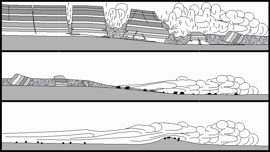 These flows are part of a suite of "Density Flows", so named because they consist of a dense fluidised cloud that flows downhill as if it were a fluid. They have interesting properties since they are compressible, travel at very high speeds, and can also move up and over large obstacles. On Earth, giant flows of this type have crossed ranges of hills nearly 1 km high and reformed on the far side to continue their destructive advance. Other examples are Snow Avalanches, Submarine Turbidites, and Long Run-Out Rock Avalanches. These flows are capable of travelling long distances if they are either initially very large, or if they contain a source of volatiles to sustain their fluidity. Boulders of metre scale or more are easily carried for many kilometres on a cushion of hot air! Related Links SpaceWar Search SpaceWar Subscribe To SpaceWar Express