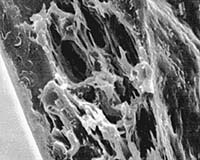 UCLA chemists report the discovery of a remarkable new nanoscale phenomenon: An ordinary camera flash causes the instantaneous welding together of nanofibers made of polyaniline, a unique synthetic polymer that can be made in either a conducting or an insulating form. The discovery, which the chemists call "flash welding," is published in the November issue of the journal Nature Materials. Numerous applications potentially could result from this research in such areas as chemical sensors, separation membranes and nano devices. "We used an ordinary 35-millimeter camera, but you could also use a laser, or any other high-intensity light source," said Richard B. Kaner, UCLA professor of inorganic chemistry and materials science and engineering, and a member of the California NanoSystems Institute at UCLA. "I was very surprised," Kaner said. "My graduate student, Jiaxing Huang, decided to take some pictures of his polyaniline nanofibers one evening when he heard a distinct popping sound and smelled burning plastic." "Jiaxing recalled a paper that we had discussed during a group meeting reporting that carbon nanotubes burned up in response to a camera flash. By adjusting the distance of the camera flash to his material, he was able to produce smooth films with no burning, making this new discovery potentially useful." The camera flash induces a chemical reaction; it starts a chain reaction in which the tiny nanofibers interact and cross-link, producing heat, which leads to more spontaneous cross linking across the entire surface of the nanofibers, welding them together, Kaner said. Unlike carbon nanotubes, which burn up, this material is thermally absorbent and can dissipate the heat well enough so that it does not burn. "We can envision welding other materials together as well," Kaner added. "One way to do this is to take two blocks of a conventional polymer and insert polyaniline nanofibers between them, then induce the cross-linking reaction to produce enough heat to weld the polymer blocks together. "We can weld polyaniline to itself or to another polymer or potentially use it to join conventional polymers together." (A polymer is a long chain of molecules, commonly known as plastics.) Because only the part exposed to light welds together, chemists can create patterns by covering sections that they do not want welded; they can control what parts weld together. Kaner's research team searched for whether any conventional techniques have this same welding property. They found a recent commercial process called laser welding, now used in the electronics industry, in which a laser beam is used to weld together conventional polymers. "The trouble with laser welding," Kaner said, "is that lasers generally have a small cross-section and consume a lot of power. Our research has the potential of revolutionizing this process." Nanofibers have high surface areas and important properties, from sensing to flash welding. "This shows why nano is important," Kaner said. "Here's a good example of where nano materials possess a property that conventional materials do not have." Kaner and Huang were the first chemists to produce large quantities of pure polyaniline nanofibers, which can also be used for sensors - findings they published last year in collaboration with Dr. Bruce Weiller and Shabnam Virji at Aerospace. The nanofibers have a much greater response in a shorter time than sensors made with conventional polyaniline. Jiaxing Huang has started a UC Berkeley postdoctoral fellowship. The research is funded by the Microelectronics Advanced Research. Related Links SpaceWar Search SpaceWar Subscribe To SpaceWar Express