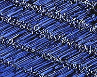 Researchers at the National Institute of Standards and Technology have demonstrated a technique for growing well-formed, single-crystal nanowires in place - and in a predictable orientation - on a commercially important substrate. The method uses nanoparticles of gold arranged in rows on a sapphire surface as starting points for growing horizontal semiconductor "wires" only 3 nanometers (nm) in diameter. Other methods produce semiconductor nanowires more than 10 nm in diameter. NIST chemists' work was highlighted in the Oct. 11 issue of Applied Physics Letters. Part of the vision of nanotechnology is the possibility of building powerful, extraordinarily compact sensors and other devices out of atomic-scale components. So-called "nanowires" - long thin crystals of, e.g., a semiconductor - could not only link nanoelectronic devices like conventional wire but also function as devices themselves, tipped with photodetector or light-emitting elements, for example. An obvious stumbling block is the problem of working with components so small that only the most sophisticated measurement instruments can even track them. To date, the most successful nanowire alignment method involved growing large numbers of the rod-like crystals on a suitable base like blades of grass, shearing them off, mixing them in a solvent, and forcing them to align by either flow or surface confinement on the test substrate to orient most of the crystals in a specific horizontal direction. Further photolithography steps are required to ensure that nanowires are positioned correctly. In contrast, the NIST technique grows arrays of nanowires made of zinc oxide, a semiconductor widely used in optoelectronics, with precise alignments. The gold "anchors" are placed with a chemical etching step and the orientation of the wires - horizontal, vertical or at a 60 degree angle from the surface - is determined by tweaking the size of the gold particles. Related Links NIST SpaceWar Search SpaceWar Subscribe To SpaceWar Express