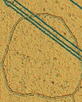 A new chemical state, designated a "protopolymer," has been observed by Penn State researchers in chains of phenylene molecules on a crystalline copper surface at low temperature. Protopolymers form when monomers, small molecules that link together chemically to form long chains, align and interact without forming chemical bonds. The novel structures were discovered by Paul S. Weiss, professor of chemistry and physics at Penn State and Gregory S. McCarty, a graduate student at time of discovery and now a research assistant professor of engineering science and mechanics. While surface-mediated pairing and other interactions have previously been seen on metal surfaces, this is the first observation of extended chains of molecules that exhibit a strong interaction without forming chemical bonds. This type of alignment could be used to control growth and assembly of molecules and for manipulation of nanostructured materials, which are assembled on an atomic or molecular scale. Nanostructured materials often exhibit very different properties from those made by conventional techniques. A paper describing the research results, titled "Formation and Manipulation of Protopolymer Chains," will be published in the Journal of the American Chemical Society on 15 December 2004. Weiss points out that in substrate-mediated interactions, those in which the surface participates in the electronic interactions between molecules, the surface itself acts as a catalyst, holding molecules in place and enabling them to align for reaction. "If we use substrate-mediated interactions to direct the arrangement of monomers prior to chemical bonding, we may be able to build atomically precise structures," says Weiss. "The key is to understand how the electronic functions of the molecule-surface interaction drive reactions and how they can be used to enhance chemical selectivity." The researchers carried out the experiments in a low temperature scanning tunneling microscope (STM) under ultrahigh vacuum by exposing a close-packed copper surface to p-diiodobenzene molecules. On the surface, the molecules dissociate into phenylene (cyclic C6H4) reaction intermediates and two iodine atoms. The positions of these phenylene molecules are observed by STM. Extended structures self-assembled as long chains on the surface. While individual phenylene molecules remain mobile, molecules in the chains did not move under the imaging conditions. They were able to extract molecules from the chains, however, by applying voltage pulses to the STM tip. This suggests that the chains are not covalently bound together, but instead are held by electronic reactions between molecules that are mediated by the surface. These chains extended across atomic steps on the copper surface where the level of the surface drops by one atom, resembling a stair step. This is a region in which electronic perturbations would be expected to disrupt the continuity. "It amazed us that these extended structures could cross step boundaries," Weiss says. "These monomers have not yet formed covalent chemical bonds, which would link them together as a large molecule, but they are aligned and their interaction is much stronger than any previously observed." Weiss and McCarty were surprised to find that although the protopolymer is 'ready' to form a molecule, individual units can still be manipulated and even pulled out of the chain. The protopolymer chains were stationary on the copper surface, but short chains on a phenylene-coated copper surface could be moved with the STM tip. The existence of this bonding state could potentially have significant implications for supramolecular design. These intermolecular interactions could be used to place compounds together like a jigsaw puzzle into complex structures based on the choice of assembly units and substrate surfaces - one more step toward the molecular design and engineering of new nanostructured materials. Related Links SpaceWar Search SpaceWar Subscribe To SpaceWar Express