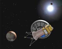 Pasadena - Nov. 21, 2000 In my previous installment, I described the near-collapse of NASA's Outer Planets Program, due both to serious cost overruns in its planned Pluto-Kuiper Express and Europa Orbiter missions and to NASA's surprise decision to cut funding in the Outer Planets Program back from $250 million to only $150 million per year -- a decision that infuriated most members of the Solar System Exploration Subcommittee during their meeting at the end of October to appraise NASA's Solar System exploration plans. This decision has been combined with NASA's decision to compensate for the funding cut by simply canceling the 2004 Pluto Express mission in order to try to maintain the Europa Orbiter for a 2006 launch. This requires the Pluto probe being launched in 2009-10 at the earliest, which makes it highly unlikely that it will reach Pluto until about 2020 -- and also requires that unless the Pluto probe is launched before the next opportunity for a Jupiter gravity-assist flyby opens up in 2014, the probe must reach Pluto with the assistance of an ion engine or solar sail, which will sharply increase the mission's overall cost. But the delay in the probe's arrival at Pluto produces another problem -- as Pluto moves farther away from its perihelion, its thin atmosphere (one of the mission's major scientific goals) is starting to freeze out on its surface. By contrast, the Europa Orbiter can tolerate a launch delay of any length with no loss in scientific return or increase in cost. NASA, however, currently seems determined to launch the Europa probe first, on two grounds. One is the intense interest from the general public (and perhaps of NASA Administrator Goldin himself) in astrobiology, to which Europa is directly relevant. The other is its argument that Pluto and the Kuiper Belt are not really all that high priority scientifically -- and that Pluto's atmosphere is even less so. Two guest speakers at the SSES meeting tried to counter the latter argument by going into detail as to Pluto's scientific importance. The first, Dr. Jonathan Lunine, described the scientific importance of the Kuiper Belt itself -- whose existence has only been confirmed over the past decade, despite the fact that it apparently contains as many as 100,000 significant-sized icy objects of which Pluto is only the largest known member. The Kuiper Belt, the closer (and much smaller) rocky Asteroid Belt, and the comets scattered into various highly eccentric orbits (or into the incredibly distant "Oort Cloud" of comets orbiting trillions of kilometers from the Sun, which we now think may also contain larger objects), seem to be the only remnants of the original cloud of small "planetesimals" which later crashed together to form the planets. As such, Lunine explained, it's become increasingly clear in the past few years that studying the Belt is vital to understand the processes by which the Solar System as a whole was formed. One major question is the way in which most of the original icy planetesimals in the "disk" out of which the Solar System coalesced collided to form the four giant planets. To what extent did Jupiter, Saturn, Uranus and Neptune form in their current orbits, and to what extent did they tug gravitationally at each other and at the remaining planetesimals to shift their orbits inward or outward? At what rate did they grow, and by what process? (There are at least two major competing theories about the latter.) To what extent did they "clear out" the remaining planetesimals, by flinging them either into the inner Solar System (where they may have provided the inner rocky planets -- including Earth -- with much of their supply of water) or away from the Sun completely into interstellar space (or into the incredibly distant "Oort Cloud" of comets orbiting up to trillions of kilometers from the Sun, which we now strongly suspect contains some larger objects as well)? Another question concerns the Kuiper objects' chemical compositions. To what degree do they chemically resemble the contents of genuinely interstellar clouds of gas and dust, and to what extent may they have been chemically modified by the physical processes that made that original cloud around the Sun coalesce into comets and planetesimals? There is some tentative evidence that they may vary from each other in surface composition to a surprising degree; why? Pluto, Charon and other Kuiper Belt debris are thought to be rich in organic compounds. In fact, they probably comprise, in total mass, the biggest supply of moderately complex organic compounds anywhere in the Solar System, which may mean incoming comets provided Earth not only with its water supply but a crucial supply of organic compounds out of which life was able to evolve. The question is, how complex are these organic compounds, and just what are they? Lunine said that the Pluto-Kuiper Express should thus have the importance of its optional extension to fly by one or two smaller Kuiper objects (or "KBOs") after Pluto reemphasized. But he also said that an examination of Pluto and its moon Charon themselves, the largest known Kuiper objects, is vital for these goals. For one thing, there is some evidence that Pluto's surface has undergone geological processes over time which may have erased many of the olderst craters on its surface -- which means that by comparing its crater population with that of Charon and of smaller KBOs, we may gain some idea of the way in which the collision rates of objects in the Belt has changed over the eons, and thus of how rapidly the original smaller objects in the Belt coalesced or were absorbed into the giant planets (or flung into interstellar space by them). For another thing, there is some tentative evidence that Pluto is actually an "embryonic" giant planet -- which was just starting to undergo the process of "runaway accumulation", in which a growing planet's gravity pulls more and more objects into itself, at the time that the gravita