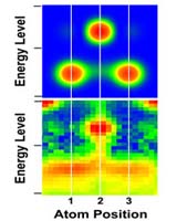 Atoms at the ends of self-assembled atomic chains act like anchors with lower energy levels than the "links" in the chain, according to new measurements by physicists at the National Institute of Standards and Technology (NIST). The first-ever proof of the formation of "end states" in atomic chains may help scientists design nanostructures, such as electrical wires made "from the atoms up," with desired electrical properties. The NIST experiments, described in the Feb. 4 issue of the journal Science,* involved measuring and comparing the electronic properties of gold atoms in short chains assembled on silicon surfaces. Energy levels of the electrons within the end atoms of the chains were lower than those of inner atoms. This condition arises because the structural, chemical and electronic symmetry of a chain is broken at each end, and the atoms' electrons are redistributed to lower the chain's energy. The electronic structure of atomic chains is comparable to the electronic structure of bulk crystals, in which surface atoms have different properties than atoms inside the crystal. "In the past three decades the study of surface states on crystals has been a major endeavor by research groups from all over the world," says Jason Crain, lead author of the Science paper. "Our study is the first to show the formation of localized states at the ends of single atom chains. The existence of end states will have implications for future studies of one-dimensional nanostructures." The NIST measurements were made with a scanning tunneling microscope (STM) and were enabled, in part, by the self-assembly of the gold chains on a silicon surface. Unlike the metal surfaces used in previous STM studies of single-atom chains, the silicon surface behaved as an insulator, allowing scientists to better isolate the chains and improve measurements of their atoms' electron energy levels. The STM, which has a needle-like tip that can apply various levels of voltage, was used to make two types of measurements of numerous chains composed of three to nine atoms. First, by maintaining a constant current between the tip and the gold-on-silicon surface, the STM produced a three-dimensional image of the surface topography. As the tip scanned across the sample, it rose and fell with changes in surface features to maintain a stable current flow. Then, by holding the STM tip at a constant distance from the surface, the scientists measured changes in current as a function of tip voltage. Measures of conductivity were used to determine the energies and spatial distribution of electrons in the chains, which showed differences between the inner and end atoms. Related Links SpaceWar Search SpaceWar Subscribe To SpaceWar Express