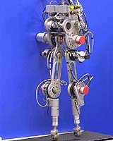 Moffett Field CA (SPX) May 16, 2005 If you nudge this robot, it steps forward and catches its balance much like a human. The machine called RABBIT, which resembles a high-tech Tin Man from "The Wizard of Oz," minus the arms, was developed by University of Michigan and French scientists over six years. It's the first known robot to walk and balance like a human, and late last year, researchers succeeded in making RABBIT run for six steps. It has been able to walk gracefully for the past 18 months. U-M researcher Jessy Grizzle, who developed the control theory for the robot, said that the balancing ability programmed into the robot has many applications in the medical field, such as so-called smart prosthetics that adapt to the wearer, and physical rehabilitation aids to help people regain the ability to walk. Bipedal robots or two-legged walking machines in existence today walk flat-footed, with an unnatural crouching or stomping gait, said Grizzle, professor of electrical engineering and computer science. Up until RABBIT, scientists produced stability in two-legged walking machines largely through extensive trial and error experiments during development, Grizzle said. Current walking machines use large feet to avoid tipping over and do not require the robot's control system to be endowed with a real understanding of the mechanics of walking or balance, Grizzle said. If you provided these robots with a pair of stilts or asked them to tip-toe across the room, they would just fall over. RABBIT was built without feet. Its legs end like stilts so that it pivots on a point when it moves forward. "If you build a robot that pivots on a point you must understand how the different parts interact dynamically, or else it will fall over," Grizzle said. If a robot has no feet, it's impossible to "cheat." The U-M/French control theory for walking, which was published in a recent paper in the International Journal of Robotics Research, gives scientists an analytical method that can predict in advance how the robot will move, Grizzle said. "The concept of stability is reduced to two formulas," Grizzle said. "It's a matter of understanding enough about the dynamics of walking and balance so that you can express with mathematical formulas how you want the robot to move, and then automatically produce the control algorithm that will induce the desired walking motion on the very fist try." Grizzle's work has promising applications in designing human prosthetics. "Our analytic method is very cost effective by reducing the amount of experimental work that goes into motion design," Grizzle said. "If you can take properties of a patient, their height, weight, how the valid leg functions, etc., maybe you could more quickly have the prosthetic adapt its characteristics to the person, instead of the person adapting his gait to the prosthetic which is essentially what happens now. These things are dreams, we're not there yet. But you need principles to get there." Other applications include rehabilitative walking aids for spinal injury patients, machines designed for home use that can climb stairs or robots for use in exploratory missions over rough terrain. RABBIT is part of France's ROBEA project (Robotics and Artificial Entity), which involves seven laboratories and researchers in mechanics, robots and control theory. The machine is housed in France's Laboratoire Automatique de Grenoble, Video of RABBIT shot by researchers during experiments shows a pair of mechanical legs walking in a circle while attached to a boom that keeps it from falling over sideways but does not guide or control its forward momentum. When pushed from behind by researcher Eric Westervelt, formerly a student of Grizzle's and now an assistant professor of mechanical engineering at Ohio State University, RABBIT lurches forward, then rights itself and continues its even forward stride. U-M became involved in the research in 1998, when Grizzle met with the lead researcher on the ROBEA project while on sabbatical in Strasbourg, France. Grizzle was able to bring his expertise in control theory, something the researchers designing the robot in Strasbourg were without. Related Links University of Michigan SpaceWar Search SpaceWar Subscribe To SpaceWar Express