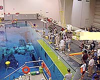 Overcoming underwater was the name of the game at Johnson Space Center's (JSC) Neutral Buoyancy Laboratory (NBL) the third weekend in June as some 400 students from across North America competed in the fourth annual national competition for student-built underwater remotely operated vehicles (ROV). Forty-two student teams designed, built and operated the underwater robots that competed June 17-19 at the Sonny Carter Training Facility. The event, organized by the Marine Advanced Technology Education (MATE) Center and the Marine Technology Society's ROV Committee, is designed to help students develop technical, problem solving, and teamwork skills that will help them in future careers in ocean and space science, engineering and exploration. Every year, the competition challenges students to develop undersea and space ROV technology that can move, grapple, carry, retrieve, install, sample and measure. ROVs come in two classes and all shapes and sizes. Some are made of PVC, chicken wire, kitchen tongs and foam pool "noodles" for buoyancy. Controlled and powered through tethers, they are guided by topside student pilots using only video images from the ROVs onboard cameras to "fly" the vehicle and perform tasks. "The goal this year is to help you to see the similarities between ocean and space environments and how technology developed for ocean work can be used in space and vice versa," Jill Zande, MATE competition coordinator told students at the competition's June 17 kick-off ceremony held at Space Center Houston. "You came to compete and many of you have your eye set on first place," Dr. Adena Williams Loston, NASA chief education officer, told the competitors. "None of that matters to NASA. I'm here because all of you are winners to us. It's competitions like these that we hope will inspire you to pursue careers in mathematics, science, technology and engineering." The scenario faced by the larger Explorer-class robots this year involved a mission to the waters that lie beneath the Jupiter moon Europa's ice-crusted surface. The robots had to descend through a simulated ice hole to repair a communications link with a science package, retrieve data probes, take a fluid sample and measure the temperature of an underwater vent. Explorer team robots competed on the floor of the NBL, a full 40 feet below the surface. First place went to the Eastern Edge Robotics Team, Mt. Pearl, Newfoundland, Canada. Second place went to Monterey Peninsula College, Calif. and third to Carl Hayden High School, Phoenix, Ariz. The smaller "Ranger" teams had to cap an old oil well, repair a damaged subsea telecommunications cable and install a new instrument on the Hubble space telescope while submerged on a platform 15 feet below the surface. High Technology High School, Lincroft, N.J., won top honors. Second and third places went to two Texas teams from the Career and Technology Education Center, Humble, and Pasadena Memorial High School, respectively. "It was a great experience," said Michael of the University of San Diego High School in California. "We learned a lot about teamwork and cooperation among other practical and valuable skills, like soldering." "It's definitely worth the work and long hours," said Sayre of the Alaska Polar Submersibles Team. "It really teaches you how to work with other people and how to meet deadlines. It was a great way to apply what you learn in class." During the opening ceremony at Space Center Houston, the students also took part in an interactive event with "aquanauts" 60 feet underwater inside the National Oceanic and Atmospheric Administration's (NOAA) Aquarius underwater habitat off Key Largo, Fla. Astronaut Clay Anderson, who lived aboard Aquarius as part of the NASA Extreme Environment Mission Operations project, was at the ceremony in person to explain how the only underwater laboratory in the world is being used to train astronauts preparing for long-duration space missions. "Every element of the competition worked very well," said Lisa Spence, an NBL fight lead for the Mission Operations Directorate, who planned and coordinated the event with MATE and other JSC organizations. "I saw a lot of interaction between the volunteers, a lot of information sharing with the students and very good comments on how friendly, helpful and professional all of our folks were." Almost four dozen volunteers from JSC, all dressed in bright yellow NBL T-shirts, helped keep things running smoothly. Spence said JSC plans to host next year's regional competition, and that MATE is beginning discussions for having the NBL host next year's national competition. The event is supported by funds, equipment and facilities, donated by the National Science Foundation and NOAA's Office of Ocean Exploration and many other space and ocean-related organizations. "It's just a ton of fun to see the creativity and energy that these kids have," said Spence, who, along with Alvin Community College, organized the past three Texas Regional competitions. "It's a great opportunity for those of us who work at the NBL to showcase our facility, especially to a group of kids who have the potential to be our co-workers in a few years." Related Links SpaceWar Search SpaceWar Subscribe To SpaceWar Express