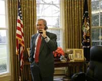 US President George W. Bush on Tuesday thanked the astronauts of the space shuttle Discovery for being "risk-takers" on behalf of space exploration and said he would pray for their safe return. "I just wanted to tell you all how proud the American people are of our astronauts. I want to thank you for being risk-takers for the sake of exploration," he said in a telephone call with the seven crew of Discovery and two astronauts on the International Space Station. "Thanks for being such great examples of courage for a lot of our fellow citizens," Bush said. "As you prepare to come back, a lot of Americans will be praying for a safe return." Crew aboard Discovery -- the first shuttle mission since the Columbia disintegrated during re-entry on February 1, 2003, killing all seven crew on board -- perpared to carry out a risky repair operation on the vessel's thermal shield to ensure the shuttle can make a safe return to Earth. "We really enjoy what we're doing. We really believe in our mission and we believe in space exploration and getting people off the planet, and seeing what's out there," Discovery Commander Eileen Collins told Bush. "So the steps we're taking right now are really worth it and we want everybody it know that and thank you very much for taking the time out of your busy schedule to talk to us," she said. "What you're doing is really important, and you've got a strong supporter for your mission here in the the White House," said Bush, who quipped: "Thanks for taking my phone call. Now get back to work." All rights reserved. � 2005 Agence France-Presse. Sections of the information displayed on this page (dispatches, photographs, logos) are protected by intellectual property rights owned by Agence France-Presse. As a consequence, you may not copy, reproduce, modify, transmit, publish, display or in any way commercially exploit any of the content of this section without the prior written consent of Agence France-Presse. Related Links SpaceWar Search SpaceWar Subscribe To SpaceWar Express
