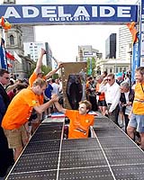 The Dutch solar car Nuna II, using ESA space technology, finished first in the World Solar Challenge, a 3010 km race right across Australia for cars powered by solar energy. Having set off from Darwin on Sunday 19 October, Nuna II crossed the finish line in Adelaide on Wednesday 22 October in a new record-breaking time of 30 hours 54 minutes, beating the previous record of 32 hours 39 minutes set by its Dutch precursor Nuna in 2001. The average speed of Nuna II, nicknamed the �Flying Dutchman' by the Australian press, was 97 kilometres per hour, also an improvement on the previous record of 91.8 kilometres per hour by Nuna. Despite two quickly changed flat tires Nuna II travelled 830 km on the third racing day - never before has such a distance been accomplished within one day. On the fourth and final day Nuna again pushed the limits by driving at a top speed of 110 km per hour, finally setting a new world record. Nuna II, the space age solar racing car from the Netherlands, held the lead right from the start. Before the start of the competition it was already tipped as a hot favourite because the streamlined racing car � like its precursor Nuna in 2001 � uses advanced space technology, provided to the team via ESA's Technology Transfer Programme, enabling the car to reach a theoretical top speed of 170 km per hour. The aerodynamically optimized outer shell consists of space-age plastics to keep it light and strong. The main body is made from carbon fibre, reinforced on the upper side and on the wheel's mudguards with aramide, better known under the trade name of Twaron. Twaron is a material used in satellites as protection for micrometeorite impacts, and nowadays also in high performance equipment like bulletproof vests. The car's shell is covered with the best triple junction gallium-arsenide solar cells, developed for satellites. These cells harvest up to 20% more energy than those used on Nuna for the 2001 race. Only weeks before the race ESA used these solar cells for the first time when the technology-demonstrating SMART-1 mission was launched to the Moon. Nuna II also carries Maximum Power Point Trackers, small devices that guarantee an optimal balance between power from the battery and the solar cells, even in less favourable situations like shade and cloud. Many satellites carry these devices, for instance ESA's Rosetta mission to comet Churyumov-Gerasimenko, due for launch in February 2004. Nuna II has been built by a team of 12 students from the universities of Delft and Rotterdam. To fulfil their mission, the student team has collected an impressive line-up of supporters. ESA not only provided them with engineering support via its Technology Transfer Programme but also with general support via the Education Office, previously headed by former ESA astronaut Wubbo Ockels, who is also adviser to the team. Ockels guided the first space-based solar car Nuna to its victory in 2001. Related Links SpaceWar Search SpaceWar Subscribe To SpaceWar Express