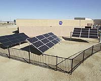 A state-of-the-art solar array is providing a unique opportunity to demonstrate the latest in high-efficiency solar cells available for terrestrial use at a demonstration site at NASA's Dryden Flight Research Center at Edwards Air Force Base, Calif. Manufactured by SunPower Corporation of Sunnyvale, Calif., the A-300 silicon cells were derived from those developed for the NASA / AeroVironment Helios and Pathfinder-Plus solar-powered aircraft under the now-concluded Environmental Research Aircraft and Sensor Technology (ERAST) program. They are considered to be the most advanced photo-voltaic cells available for terrestrial applications. The experimental site consists of two fixed-angle solar arrays and one single-axis sun-tracking array. Together they produce up to five kilowatts of direct current power on a sunny day, which is equivalent to powering two or three average California homes. The sun-tracking array tilts to follow the sun using an advanced "real-time" tracking device rather than normal pre-programmed mechanisms. One of the fixed arrays contains standard less-efficient cells, and is being used as a baseline comparison for the newer fixed-cell array. A According to SunPower, typical commercial-grade solar cells are in the range of 12 to15 percent efficient at converting sunlight to electricity, while the new cells are 20 percent efficient, or up to 50 percent better than the older technology. The efficiency improvement is due largely to the routing of cell electrical connections behind the cells, which was required in the original design for the solar-powered aircraft to maximize the limited space available atop the wings. "It is a grid-connected system, so it is putting power back into the electrical grid," stated Jon Ferrall, NASA Dryden electrical engineer, who managed the installation of the solar array demonstration site. "The system is providing significant power to the 7,870 square foot Public Affairs and Commercialization building here at Dryden." The demonstration is comparing the potential advantage of the tracking array over the fixed array, verifying the effectiveness of the dirt-repellant coating over the protective glass housing the solar cells, and the effect, if any, of dust and dirt on the arrays. Array efficiency is monitored remotely on a computer. Should the demonstration be successful, it would be a major step toward transferring the technology to the commercial market, allowing for mass production of these high-efficiency solar cells for a variety of residential, business and governmental applications. Charlie Gay, chief array installer of SunPower, said they have been able to actively predict the output of the system. "SunPower's ability to predict energy delivery over the span of the past year is attributed to the modules and system working well," Gay said. Jennifer Baer-Riedhart, NASA Dryden's project manager for the solar demonstration site, estimated that the life expectancy is at least 25 years. A second phase of the demonstration will consist of establishing an Internet web site that will allow the public to view "real-time" information on the Dryden solar demonstration site, as well as other solar array sites that are planned for construction in Hawaii and Arizona. Long-term plans include construction of a solar "farm" at NASA Dryden that would power up to one-third of the center's electrical power needs. The solar power demonstration site was funded through a technology commercialization allocation from NASA's ERAST program at a cost of around $130,000. It was constructed by Renewable Energy Concepts Inc. of Los Osos, Calif. Related Links Dryden Flight Research Center SpaceWar Search SpaceWar Subscribe To SpaceWar Express
