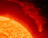 Solar physicists from Lockheed Martin and the Solar Physics and upper-Atmosphere Research Group at the Department of Applied Mathematics of the University of Sheffield, UK have used computer modeling and some of the highest resolution images ever taken of the solar atmosphere to explain the cause of supersonic jets that continuously shoot through the low atmosphere of the Sun. Their results, which appear as the cover story in tomorrow's issue of the journal Nature, directly address the origin of these jets, called spicules. The origin of spicules has been a mystery since their discovery in 1877. These findings may well lead to a better understanding of how matter is propelled upward into the solar corona to form the solar wind, a stream of particles continuously emitted by the Sun that sweeps past Earth's orbit. Disturbances in the solar wind can influence the upper atmosphere and space environment around the Earth and damage satellites in orbit. "The combination of computer modeling, new high resolution images taken with the Swedish 1-meter Solar Telescope (SST) on the island of La Palma, Spain and data taken simultaneously with two satellites in space, was crucial to figure out how spicules are formed," said Dr. Bart De Pontieu, one of the main investigators on the study, and solar physicist at the Lockheed Martin Solar and Astrophysics Lab (LMSAL) at the company's Advanced Technology Center in Palo Alto, Calif. "We used a computer model to provide the missing link between observations of the surface of the Sun, taken with the MDI instrument onboard ESA/NASA's Solar and Heliospheric Observatory (SOHO) satellite, and observations of the jets in the low solar atmosphere taken with the SST and NASA's Transition Region and Coronal Explorer (TRACE) satellite." Spicules are jets of gas or plasma propelled upwards from the surface of the Sun. They shoot into its atmosphere or corona at supersonic speeds of about 50,000 miles per hour, and reach heights of 3,000 miles above the solar surface in less than five minutes. Although there are over 100,000 spicules at any time in the Sun's low atmosphere, or chromosphere, they remain largely unexplained, in part because observations are difficult for objects with so brief a lifetime (about five minutes) and relatively small size (300 miles diameter). "By simultaneously taking a series of high resolution images with the Swedish Solar Telescope, showing details down to 80 miles, and with the TRACE satellite, we discovered that these jets often occur periodically, usually every five minutes or so, at the same location," said Professor Robertus Erdelyi von Fay-Siebenburgen, the other main investigator on the study, and professor in applied mathematics at the Solar Physics and upper-Atmosphere Research Group of the University of Sheffield, UK. "We developed a computer model of the Sun's atmosphere to show that the periodicity of the spicules is caused by sound waves at the solar surface that have the same five minute period." The sound waves at the solar surface are usually damped before they can reach the Sun's atmosphere. However, De Pontieu, Erdelyi and Stewart James, a newly graduated Ph.D. under the supervision of Professor Erdelyi at the University of Sheffield, found that under certain conditions, the sound waves can penetrate through the damping zone and leak into the solar atmosphere. Their computer model shows that after the sound waves leak into the atmosphere, they develop into shock waves that propel matter upwards, forming a spicule. De Pontieu and his colleagues measured actual waves and oscillations at the surface of the Sun, using these measurements to drive their computer model of the solar atmosphere, which then predicted when jets of gas should shoot up. They were pleasantly surprised to see that the model predicts very accurately when jets should be observed on the Sun with the SST and TRACE. "Spicules carry more than 100 times the mass into the Sun's atmosphere required to feed the solar wind," said De Pontieu, "which means that they are of huge importance for the balance of how much mass goes into and out of the corona." With the origins of spicules revealed, it will be possible to study whether the mass that spicules carry into the solar corona contributes to the solar wind. Future studies will also focus on the role the shock waves may play in the higher solar atmosphere or corona. The results of this study are in a paper published in the journal Nature. The authors are Dr. Bart De Pontieu of Lockheed Martin Solar and Astrophysics Lab, and Professor Robertus Erdelyi von Fay-Siebenburgen and Dr. Stewart James of The Solar Physics and upper-Atmosphere Research Group at the Department of Applied Mathematics, University of Sheffield, UK. Related Links University of Sheffield LMSAL SpaceWar Search SpaceWar Subscribe To SpaceWar Express