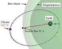 The second satellite in the China-ESA Double Star project was declared ready to study the Earth's magnetosphere. The Double Star project consists of two spacecraft that orbit the Earth and study the Earth's magnetosphere, in concert with ESA's four spacecraft Cluster mission. The Double Star spacecraft are known as TC-1 and TC-2, or translating to English, as Explorer-1 and Explorer-2. The second spacecraft of Double Star Programme TC-2 was successfully launched from Taiyuan Satellite Launching Centre on 25 July 2004. The commissioning of both space and ground segments were performed from 27 July to 30 September. The Commissioning Review was held at Mullard Space Science Laboratory (UK) on 6-7 October 2004. The Review Board, consisting of members from the Chinese National Space Agency (CNSA) and ESA, examined the performance of the spacecraft, instruments and ground segment of the Double Star mission and declared TC-2 ready for the nominal operation phase. The spacecraft and all instruments are in good health and ready to return new observations to scientists. The two rigid booms were deployed nominally shortly after launch (change to different pyro actuators after one had failed on TC-1) and the magnetic interferences from the solar arrays are no longer present on TC-2, which confirms that the problems occurring on TC-1 have been solved. However, a few unexpected problems occurred in the early stage of the mission. In the end of July 2004, soon after the launch, the near-Earth space environment became filled with very high fluxes of relativistic (>2 MeV) electrons for a period of almost two weeks; the peak electron fluxes were estimated to be the highest in 20 years. The cause was the fast solar wind streams that occurred during the period, which resulted in the magnetosphere producing high fluxes of "killer" electrons. These electrons can produce high charging levels in dielectrics inside the spacecraft, causing discharging events that can trigger a variety of problems to the payload and the satellite subsystems. Both Double Star satellites cross the radiation belts twice per orbit; that is approximately twice a day for TC-1 and four times a day for TC-2. So, during the period of those two weeks several TC-2 instruments (as well as some on TC-1) experienced multiple resets. Luckily all the instruments survived, and the consequences of the resets were mainly data losses. Unfortunately, on the spacecraft side, both the main and redundant computers of the satellite attitude control system failed on TC-2. The cause of these failures is still under investigation but severe space weather conditions are believed to play a role. As a result, a natural slow rotation of the satellite spin axis from its original position cannot be corrected. The attitude can still be determined, however, using a technique that is based on the magnetic field measurements collected around the perigee. The drift is observed to be exactly the same as predicted, but due to the failures the attitude cannot be changed any more if needed. Otherwise the spacecraft is in good health and these failures are not expected to have any major impact for the nominal duration (12 months) of the mission. The ground segment, which includes the Chinese stations in Beijing and Shanghai and the ESA ground station at Villafranca, has been tested and works as designed. Unfortunately the Beijing station had a failure on 21 August 2004 due to a lightning strike and has been non-operational since then. The other two stations, however, have been able to cover for the Beijing ground station, which is expected to be back in operations by the end of October. The three operation centres, the European Payload Operation System at RAL (UK), the Chinese Double Star Science Operation Centre and Double Star Operation and Management Centre are routinely operating both European and Chinese instruments. The European Data Disposition System at IWF (Austria) forwards raw data to the European users. Finally the Austrian, Chinese, French and United-Kingdom data centres have successfully exchanged and distributed preliminary science data. TC-2 is a polar-orbiting satellite (inclination of 90.1�) and currently its apogee is at an altitude of ~38 300 km over the north pole and its perigee at an altitude of ~680 km over the south pole. The orbital period is 11.5 hours during which it encounters several key plasma regions of the near-Earth space. The handover ceremony from the satellite manufacturer, CAST (China Academy of Space Technology), to CSSAR (Center for Space Science and Applied Research) will take place in Beijing on 3 November 2004. This is followed by the IWG (Implementation Working Group) meeting on 4 November 2004 where various issues of the Double Star ground data systems will be discussed. On 5 November 2004 the SWT (Science Working Team) meeting takes place; in the meeting various scientific and technical matters on the Double Star observations will be discussed. The next science event is the 2nd Double Star � Cluster Workshop, to be held in Beijing on 8-10 November 2004. At the conference new Double Star observations will be presented and will be compared with Cluster observations, particularly those made during conjunctions when the satellites are on the same magnetic field lines but at different distances from the Earth. Related Links Double Star at ESA SpaceWar Search SpaceWar Subscribe To SpaceWar Express