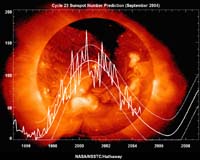 for NASA Science News Huntsville AL (SPX) Oct 19, 2004 Solar physicist David Hathaway has been checking the sun every day since 1998, and every day for six years there have been sunspots. Sunspots are planet-sized "islands" on the surface of the sun. They are dark, cool, powerfully magnetized, and fleeting: a typical sunspot lasts only a few days or weeks before it breaks up. As soon as one disappears, however, another emerges to take its place. Even during the lowest ebb of solar activity, you can usually find one or two spots on the sun. But when Hathaway looked on Jan. 28, 2004, there were none. The sun was utterly blank. It happened again last week, twice, on Oct. 11th and 12th. There were no sunspots. "This is a sign," says Hathaway, "that the solar minimum is coming, and it's coming sooner than we expected." Solar minimum and solar maximum - "Solar Min" and "Solar Max" for short -are two extremes of the sun's 11-year activity cycle. At maximum, the sun is peppered with spots, solar flares erupt, and the sun hurls billion-ton clouds of electrified gas toward Earth. It's a good time for sky watchers who enjoy auroras, but not so good for astronauts who have to be wary of radiation storms. Power outages, zapped satellites, malfunctioning GPS receivers - these are just a few of the things that can happen during Solar Max. Solar minimum is different. Sunspots are fewer - sometimes days or weeks go by without a spot. Solar flares subside. It's a safer time to travel through space, and a less interesting time to watch polar skies. Hathaway is an expert forecaster of the solar cycle. He keeps track of sunspot numbers (the best known indicator of solar activity) and predicts years in advance when the next peaks and valleys will come. It's not easy: "Contrary to popular belief," says Hathaway, "the solar cycle is not precisely 11 years long." Its length, measured from minimum to minimum, varies: "The shortest cycles are 9 years, and the longest ones are about 14 years." What makes a cycle long or short? Researchers aren't sure. "We won't even know if the current cycle is long or short - until it's over," he says. But researchers are making progress. Hathaway and colleague Bob Wilson, both working at NASA's Marshall Space Flight Center, believe they've found a simple way to predict the date of the next solar minimum. "We examined data from the last 8 solar cycles and discovered that Solar Min follows the first spotless day after Solar Max by 34 months," explains Hathaway. The most recent solar maximum was in late 2000. The first spotless day after that was Jan 28, 2004. So, using Hathaway and Wilson's simple rule, solar minimum should arrive in late 2006. That's about a year earlier than previously thought. The next solar maximum might come early, too, says Hathaway. "Solar activity intensifies rapidly after solar minimum. In recent cycles, Solar Max has followed Solar Min by just 4 years." Do the math: 2006 + 4 years = 2010. By that time, according to NASA's new vision for space exploration, robot ships will be heading for the moon in advance of human explorers. If Hathaway and Wilson's prediction is correct, those robots will need good shields. Solar flares and radiation storms can damage silicon brains and electronic guts almost as badly as their organic counterparts. For now, says Hathaway, we're about to experience "the calm before the storm." And although he's a fan of solar activity - what solar physicist isn't? - he's looking forward to the lull. "It'll give us a chance to see if our 'spotless sun' method for predicting solar minimum really works." Solar Max will be back soon enough. Related Links Marshall Space Flight Center SpaceWar Search SpaceWar Subscribe To SpaceWar Express