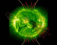 A layer deep in the solar atmosphere can be used to estimate the speed of the solar wind, a stream of electrified gas that constantly blows from the Sun. Estimating the speed of the solar wind will improve space weather forecasts, enhancing our ability to protect communications, navigation, and other satellites from the effects of solar storms. We will also be able to warn human explorers on their way to the planets of the severity of those storms. The solar wind flows from the Sun's hot, thin, outer atmosphere, the "corona". The researchers were surprised to discover that the structure of the Sun's cooler, dense lower atmosphere, called the chromosphere, could be used to estimate the speed of the solar wind. This was unexpected because the solar wind originates in the corona, and the chromosphere is much deeper: it lies just above the Sun's visible surface. "It's like discovering that the source of the river Nile is another 500 miles inland," said Dr. Scott McIntosh of the Southwest Research Institute, lead author of a paper on this research published May 10 in the Astrophysical Journal. The new work promises to increase the accuracy of space radiation forecasts. The Sun occasionally launches billion-ton blasts of electrified gas, called coronal mass ejections (CMEs), into space at millions of miles (kilometers) per hour. If a fast CME is plowing through slow solar wind, a shock builds up in front of the CME that accelerates the electrically charged solar wind particles. These fast particles can disrupt satellites and are hazardous to unprotected astronauts. "Just as knowing more details about the atmosphere helps to predict the intensity of a hurricane, knowing the speed of the solar wind helps to determine the intensity of space radiation storms from CMEs," said co-author Dr. Robert Leamon of L-3 Government Services at NASA's Goddard Space Flight Center. Like wind on Earth, the solar wind is gusty, ranging in speed from about 750,000 miles per hour (approximately 350 km/second) to 1.5 million miles per hour (700 km/second). Since the solar wind is made up of electrically-charged particles, it responds to magnetic fields that permeate the solar atmosphere. Solar wind particles flow along invisible lines of magnetic force like cars on a highway. When the magnetic field lines bend straight out into space, as they do in "coronal hole" regions, the solar wind acts like cars on a drag strip, racing along at high speed. When the magnetic field lines bend sharply back to the solar surface, like the pattern of iron filings around a bar magnet, the solar wind acts like cars in city traffic and emerges relatively slowly. Scientists have known this for over thirty years and used it to give a crude estimate for the speed of the solar wind - either fast or slow. In the new work, the team has tied the speed of the solar wind as it blows past Earth to variations deeper in the solar atmosphere than had previously been detected (or even expected). By measuring the time taken for a sound wave to travel between two heights in the chromosphere, they were able to determine that the chromosphere is effectively "stretched thin" below coronal holes with their open magnetic fields, but compressed below magnetically closed regions. The team used the observation to derive a continuous range of solar wind speeds from the structure of the chromosphere. The wider the chromospheric layer is, the more it is being allowed to expand by open magnetic fields and the faster the solar wind will blow. This new method is more precise than the old "fast or slow" estimate. NASA's Transition Region and Coronal Explorer (TRACE) spacecraft was used to measure the speed of sound waves in the chromosphere, and NASA's Advanced Composition Explorer (ACE) spacecraft was used to take measurements of the solar wind speed as it blew by the Earth. Comparing the data from the two spacecraft gave the connection. "Prior to this discovery, we could only determine solar wind speed from spacecraft that were roughly in line between the Earth and the Sun, like ACE, WIND, and the Solar and Heliospheric Observatory",said Dr. Joe Gurman, a solar researcher at NASA's Goddard Space Flight Center. "This spacecraft fleet was placed along the Earth-Sun line because we need to know about the space weather coming our way. However, compared to the size of our solar system, this is a very narrow range; it's like looking through a soda straw. With this discovery, we can use TRACE to build up images that can predict the solar wind speed throughout half the solar system." Related Links NASA's TRACE mission NASA's Goddard Space Flight Center SpaceWar Search SpaceWar Subscribe To SpaceWar Express