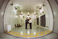 Sandia National Laboratories this week plans to conduct the first tests at the lab's new Gamma Irradiation Facility, officially welcoming the GIF into the lab's family of experimental nuclear facilities. The facility can be used for space technology development, military systems vulnerability testing, nuclear reactor component development, and many other applications. Objects as large as tanks or satellites and as small as microchips can be tested at the GIF for their abilities to withstand the damaging radiation environments they might experience in space, near stored nuclear materials, or during a wartime nuclear exchange. "We are pleased to bring the new GIF on line to support our national security mission and our military, space, and nuclear energy customers," says Sandia Nuclear Facilities Manager Ted Schmidt. "This facility has capabilities that will help satisfy many of the nation's experimental gamma radiation needs for decades." The facility includes two 10 x 10-ft. test cells, one cavernous 18 x 30-ft. chamber that can accommodate large test objects such as weapon assemblies, military vehicles, or space equipment, and an 18-ft.-deep pool of water where underwater experiments can be conducted. Pins made of radioactive cobalt-60 make up the gamma source arrays that are used to subject test objects, such as electronic components, to radiation.