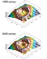 A team of scientists, led by researchers at Scripps Institution of Oceanography at the University of California, San Diego, has discovered an active underwater volcano near the Samoan Island chain. During a research cruise to study the Samoan hot spot, scientists uncovered a submarine volcano growing in the summit crater of another larger underwater volcano, Vailulu'u. Researchers explored the unique biological community surrounding the eruption site, and were amazed to find an "Eel City," a community of hundreds of slithering eels. This new volcano, dubbed Nafanua after the ferocious Samoan goddess of war, did not exist just fours years ago, according to co-chief scientists Hubert Staudigel, a geologist at Scripps's Cecil H. and Ida M. Green Institute of Geophysics and Planetary Physics, and Stan Hart, a geochemist at Woods Hole Oceanographic Institution. With a growth rate of at least eight inches per day, the volcanic cone has rapidly emerged since the scientists' last expedition to this area in May 2001. Nafanua now stands at 300 meters, or nearly 1,000 feet. "To actually have a documented case of an underwater volcano that has emerged within an accurate period of time is very rare-this is one of those cases," said Staudigel. Scientists were tipped off to the volcano's existence when they profiled the seafloor of the Vailulu'u crater using multibeam mapping. Existing maps of the seafloor in the area gave little indication that this volcano existed. When sound beams were directed into the crater this time, they measured an unusually shallow depth. These interesting results prompted further investigation of the area using the manned submersible Pisces V-a seven-foot sphere that has the capability to dive to depths of more than 6,000 feet, operated by NOAA's Hawaii Undersea Research Laboratory. The water surrounding the volcanic cone is extremely turbid due to hydrothermal activity and the vigorous vents that produce this volcanic "fog" are obscured, according to Staudigel. Although visibility from the submersible was less than 10 feet, the researchers were able to observe the unique biological community surrounding the newly formed volcanic cone. Much of Nafanua is covered with yellow "fluff," microbial aggregations that are produced by microscopic life feeding on chemical energy from the volcano's hydrothermal system. As Staudigel and his international team explored the area, they discovered a number of large communities of eels inhabiting the fragile cavernous rock pillars surrounding the hydrothermal vent area. As the submarine landed near this area, scores of eels, each approximately one foot in length, emerged from the rock caves and crevices. The scientists named this novel marine hydrothermal community "Eel City." "At this point we do not know why we found such extensive eel communities surrounding this volcano-it's a mystery that we hope to learn more about on future cruises," said Staudigel. Within decades, continued growth of Nafanua could bring the summit of this volcano from its current depth of 600 meters to a depth of approximately 200 meters-close enough to the sea surface that it could provide a potential hazard to ocean navigation and coastal communities. Such hazards may include the explosive reaction between red-hot lava and seawater, or tsunamis that may be caused by the collapse of the newly built volcano. "It is a good idea for us to keep our eyes on this area, but there is no real reason for concern about immediate danger," said Staudigel. Three students from High Tech High in San Diego were aboard one of the two expeditions to Nafanua and assisted researchers in collecting and analyzing data. These students also created and maintained an in-depth web site related to the cruise where they posted reports, maps, photos and videos from submersible dives. Also, the students and scientists aboard the ship participated in the first ever student-to-student videoconference between a high school and a research vessel with the help of HiSeasNet, a satellite communications system that provides continuous Internet connectivity for oceanographic research vessels at sea. The discovery of Nafanua included investigators from oceanographic institutions in the U.S. and Australia, in addition to graduate, undergraduate and high school students. Investigators included Staudigel, Anthony Koppers, Alexis Templeton, and Brad Tebo from Scripps Oceanography; Hart from Woods Hole; Craig Young and Sandra Brooke of Oregon Institute of Marine Biology at the University of Oregon; Adele Pile of the University of Sydney; Ian Hudson from British National Oceanography Centre, Southampton; Ray Lee from Washington State University; and Ed Baker of NOAA Pacific Marine Environmental Laboratory. This research was performed aboard two research vessels from the University of Hawaii, Ka'imikai O Kanaloa and Kilo Moana, and the NOAA submersible Pisces V. Related Links Scripps Institution of Oceanography SpaceWar Search SpaceWar Subscribe To SpaceWar Express