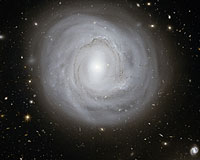 Garching, Germany (ESO) Feb 06, 2009 A spectacular new image of an unusual spiral galaxy in the Coma Galaxy Cluster has been created from data taken by the Advanced Camera for Surveys on the NASA/ESA Hubble Space Telescope. It reveals fine details of the galaxy, NGC 4921, as well as an extraordinary rich background of more remote galaxies stretching back to the early Universe. The Coma Galaxy Cluster, in the northern constellation of Coma Berenices, the hair of Queen Berenice, is one of the closest very rich collections of galaxies in the nearby Universe. The cluster, also known as Abell 1656, is about 320 million light-years from Earth and contains more than 1000 members. The brightest galaxies, including NGC 4921 shown here, were discovered back in the late 18th century by William Herschel. The galaxies in rich clusters undergo many interactions and mergers that tend to gradually turn gas-rich spirals into elliptical systems without much active star formation. As a result there are far more ellipticals and fewer spirals in the Coma Cluster than are found in quieter corners of the Universe. NGC 4921 is one of the rare spirals in Coma, and a rather unusual one - it is an example of an "anaemic spiral" where the normal vigorous star formation that creates a spiral galaxy's familiar bright arms is much less intense. As a result there is just a delicate swirl of dust in a ring around the galaxy, accompanied by some bright young blue stars that are clearly separated out by Hubble's sharp vision. Much of the pale spiral structure in the outer parts of the galaxy is unusually smooth and gives the whole galaxy the ghostly look of a vast translucent jellyfish. The long exposure times and sharp vision of Hubble also allowed it to not just image NGC 4921 in exquisite detail but also to see far beyond into the distant Universe. All around, and even through the galaxy itself, thousands of much more remote galaxies of all shapes, sizes and colours are visible. Many have the spotty and ragged appearance of galaxies at a time before the familiar division into spirals and ellipticals had become established. The Hubble images used to make this picture were originally obtained by a team led by Kem Cook (Lawrence Livermore National Laboratory, California). The team was using Hubble to search for Cepheid variable stars in NGC 4921 that could be used to measure the distance to the Coma Cluster and hence the expansion rate of the Universe. Unfortunately the failure of the Advanced Camera for Surveys in early 2007 meant that they had insufficient data to complete their original programme, although they hope to continue after the servicing mission. Very deep imaging data like this, which is available to anyone from the Hubble archives, may also be used for other interesting scientific explorations of this galaxy and its surroundings. This image was created from 50 separate exposures through a yellow filter and another 30 exposures through a near-infrared filter using the Wide Field Channel of the Advanced Camera for Surveys on Hubble. The total exposure times were approximately seventeen hours and ten hours respectively. Share This Article With Planet Earth