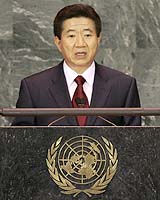 President Roh Moo-Hyum of Korea addresses the 2005 World Summit 14 September 2005 at the 60th session of the United Nations General Assembly in New York. AFP photo by Jeff Haynes.