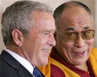 Washington (AFP) Oct 17, 2007 President George W. Bush Wednesday defied China's fury as he became the first US leader to appear in public with the Dalai Lama, and called on Beijing to abandon "religious repression." The exiled Tibetan spiritual leader accepted the Congressional Gold Medal, lawmakers' highest civilian honor, in a formal ceremony in the US Capitol's ornate Rotunda, certain to further enrage leaders in Beijing. Bush praised the 72-year-old Buddhist icon for keeping the "flame" of Tibet's people alive, and called on Beijing to open political talks with him about the region's future. "They will find this good man to be a man of peace and reconciliation," Bush said in the decorous room beneath the soaring dome of the US Capitol building, watched by lawmakers, Tibetan exiles and Buddhist monks. "Americans cannot look to the plight of the religiously oppressed and close our eyes or turn away," Bush said. "That is why I will continue to urge the leaders of China to welcome the Dalai Lama to China," said the president, in a ceremony broadcast live to China by radio, television and the Internet by Voice of America. The Dalai Lama reiterated that he was not seeking independence from China but wanted greater autonomy, and he said he was sorry that his presence in the United States had ruffled Sino-US relations. "The consistency of American support for Tibet has not gone unnoticed in China," he said during the ceremony. "Where this has caused some tension in the US-China relations I feel a sense of regret." Bush had earlier provoked a fresh outburst of anger from Beijing, for his previous private meeting on Tuesday with the Dalai Lama, a style of encounter preferred by previous US presidents. The Dalai Lama fled to India following a failed uprising against Chinese rule in 1959, and currently lives in the northern hill town of Dharamsala, which is also the seat of his government in exile. China has ruled Tibet since sending troops into the region in 1950, and officially "liberating" it from feudal rule a year later. Senate Republican minority leader Mitch McConnell paid tribute to Bush for appearing at a live public event with the Dalai Lama. "US presidents have met privately with the Dalai Lama for years, but it wasn't until today that any of them had lent the prestige of the office to a public event," McConnell said. Chinese Foreign Minister Yang Jiechi had warned that Bush's private meeting with the Dalai Lama and the Congress ceremony represented "a severe violation of the norms of international relations." He accused the United States of having "severely hurt" China's feelings and interfered in its internal affairs. But Bush said that he had given advance notice to his Chinese counterpart Hu Jintao about him attending the controversial ceremony honoring the Dalai Lama but the Chinese leader was unhappy about the move. "I have consistently told the Chinese that religious freedom is in their nation's interest," said Bush. Past Congressional Gold Medal winners include former South African president Nelson Mandela, Mother Teresa of Calcutta, polio vaccine developer Jonas Salk, tough-guy Western actor John Wayne, singer Frank Sinatra, and the late pope John Paul II. Top Democratic and Republican leaders of the US Senate and House of Representatives, as well as Holocaust author Elie Wiesel, made remarks at the Congress ceremony. Hollywood star Richard Gere, long a campaigner for human rights in Tibet, was also there.