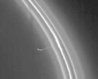 Leicester England (SPX) Apr 3, 2006 The latest Cassini spacecraft images of Saturn's F ring have revealed structures never seen before in a planetary ring system. Using images obtained by Cassini's Imaging Science Subsystem cameras, astronomers at Queen Mary College, part of the University of London, modeled the dynamics of the structures, which they call channels and streamers, to test their dynamics and predict their behavior. Ever since the Voyager spacecraft imaged the tiny shepherd moons orbiting Saturn along with its rings in the early 1980s, astronomers have suspected that all of the giant planets in the solar system are stabilized by the gravitational effects of shepherds. Saturn's narrow F ring, which lies just outside the spectacular main rings, is tended by two such small moons: Prometheus (about 100 kilometers or 64 miles in diameter), orbiting just inside the F ring, and Pandora (85 kilometers or 53 miles wide), orbiting just outside the F ring. "The models are in excellent agreement with structures observed in the Cassini images," said team leader Carlos Chavez. "We have found that the gaps are not due to a lack of particles, but to a forced change in orbital elements by a close encounter with Prometheus. The moon's gravity temporarily pulls some of the particles away from the main stream as it passes by." Speaking at the annual meeting of the Royal Astronomical Society, Chavez described the dynamics of the structures as "like a crowd of people walking in a number of lines in the same direction down a street. Suddenly, someone else comes from the other side of the street and collides with a few of them. He then tells them to come with him, and walks away. Only people in the closest lines follow him, which produces gaps in the crowd. However, they return back to the main group shortly afterwards." Chavez said the most dramatic illustration of the effect will occur in late 2009, when the F ring and Prometheus become anti-aligned. Once per orbit during this anti-alignment, Prometheus will reach apoapsis - its furthest point from Saturn - and the nearby ring particles will reach periapsis � their closest point to Saturn. At that time, Prometheus and the ring particles move closest to one another other. When the Queen Mary team modeled how these events will affect collisions between the ring particles and Prometheus, they found a low number of collisions � only 0.6 percent of the particles collided per orbit. The result was unexpected, they said, because they originally thought Prometheus is a "thieving moon," stealing particles from the F ring. It turns out the particles are pulled away only temporarily, but then drift back into the ring. The astronomers said the ring-moon interactions also probably affect the surface of Prometheus. Like Earth's moon and most other planetary satellites, Prometheus has a synchronous rotation, always showing the same face to Saturn. The team investigated the location on Prometheus' surface where the particles would be expected to collide. They found that, in the synchronous co-rotating reference frame, the collisions occurred on the trailing face of Prometheus - and particularly in the equatorial region. Chavez said the scenario offers important implications for the surface features of Prometheus, and with further observations the team expects to find differences in albedo, or reflectivity, between the trailing and leading faces. "It would be like a man colliding with other people while facing continuously in a particular direction and hitting them with only one side of his body," he explained. Related Links Cassini Cassini Images JPL