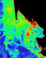 Paris (ESA) Nov 22, 2002 From 800 km in space, you would have to squint really hard to see one of these -- a micron-sized phytoplankton and its armoured shell. But when a lot of them get together, say, a few trillion or so ... ... what you see is the image below from the European Space Agency's Medium Resolution Imaging Spectrometer (MERIS) instrument. The sensor, carried onboard the Envisat satellite, acquired imagery of a phytoplankton bloom that occurred this summer in the north Atlantic, off the coasts of Nova Scotia and Newfoundland in Canada. The large, aquamarine-coloured patch visible in the image is a 300 x 200 km ocean area densely populated with phytoplankton, small aquatic organisms that form the basis of the ocean's food chain and play a key role in the global ecosystem. These blooms -- the sudden appearance of phytoplankton in massive numbers, enough to colour the ocean and be detected from orbiting sensors -- are capable of being analysed now on a global scale only in the past few decades with the advent of satellite-based sensors. The MERIS instrument offers new capabilities to marine researchers interested in phytoplankton blooms and other ocean processes. Phytoplankton blooms are a fairly common occurrence, most often found in temperate waters. A recent study from the US National Aeronautics and Space Administration and the National Oceanic and Atmospheric Administration found an overall annual decrease in phytoplankton globally, with phytoplankton levels in open waters near the equator increasing significantly, and decreasing in many areas of open water in northern oceans. By bloom standards, the Canadian one was not particularly large. In comparison, it was smaller than the large blooms seen regularly south of Iceland, which measured 1000 x 300 km in 1991. "It's very much smaller than the bloom in the Bering Sea in the northern Pacific in 1998-99, which lasted six months or more," says Prof Jim Aiken with the Plymouth Marine Laboratory (PML), a UK centre for investigating marine biodiversity and the role of the oceans in global climate change.