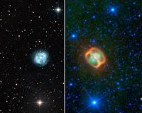 WISE Image Reveals Strange Specimen In Starry SeaPasadena CA (JPL) Nov 18, 2010 A new image from NASA's Wide-field Infrared Survey Explorer shows what looks like a glowing jellyfish floating at the bottom of a dark, speckled sea. In reality, this critter belongs to the cosmos - it's a dying star surrounded by fluorescing gas and two very unusual rings. "I am reminded of the jellyfish exhibition at the Monterey Bay Aquarium - beautiful things floating in water, except ... read more |