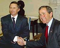 Washington (AFP) Mar 12, 2002 Russian Defense Minister Sergei Ivanov met with US President George W. Bush Tuesday in hopes of soothing tensions over nuclear arms cuts and the war on terrorism ahead of a May 23-26 Russo-US summit. After meeting with Bush and the US leader's national security advisor, Condoleezza Rice, Ivanov -- who met earlier with US Defense Secretary Donald Rumsfeld -- described the talks as "rather warm and very productive." "We have discussed a broad range of issues, going from the reduction of offensive strategic nuclear arms to terrorism, non-proliferation, economic cooperation, and the issue of power or energy," Ivanov told reporters. The Russian official also said Bush had promised Moscow's worries about Washington's plans to send military trainers to the former Soviet republic of Georgia to help battle terrorism would be "taken into account." "We also discussed the issue of Georgia, because we still see that terrorists and criminals are present in the territory of that country, and as I understood the president assured me that all those Russian problems could not be resolved unless the Russian interests are taken into account," he said. Regarding Moscow's ties with the NATO alliance formed to counter the Soviet Union, Bush "has assured me that there is still a great interest in forging those new relationships and maintaining that cooperation," said Ivanov, who was also expected to meet with US Secretary of State Colin Powell during his stay. The visiting official said talks at the White House did not cover one of the most contentious issues marring Russo-US relations: media reports that US nuclear policy includes contingency plans for making Russia a target. But Ivanov said he and Rumsfeld had a "very long and very detailed discussion" about the reports and would discuss the matter publicly at a joint press conference set for Wednesday. The Los Angeles Times recently reported that following a secret review of the US nuclear posture, the Bush administration ordered the Pentagon to draw up contingency plans for the use of nuclear weapons against a wide range of countries and in a variety of scenarios. The countries included not only Russia, China and the states Bush called the "axis of evil" -- Iraq, Iran and North Korea -- but also Libya and Syria, according to the report, which prompted demands for clarification from Moscow and Beijing. Pentagon spokeswoman Victoria Clarke said the review was "not a targeting document of any kind" but reflected the changing nature of the threat with the end of the Cold War and the proliferation of weapons of mass destruction. "It is hardly likely that we face an all-out nuclear attack by the Soviet Union. It is more likely that we have to face very real and growing and changing threats of weapons of mass destruction from a variety of places," she said. Ivanov did not give details of talks with Bush on reductions in offensive nuclear weapons, which the US leader and Russian President Vladimir Putin agreed to at a November summit in Washington and at Bush's Texas ranch. The two leaders called for reductions in nuclear weapons to 2,200 to 1,700 warheads over the next ten years at their last summit in November, but both sides have so far been unable to agree on how to put it in writing. Russia also has raised objections to a US plan to store some of those warheads rather than destroy them. Related Links SpaceDaily Search SpaceDaily Subscribe To SpaceDaily Express