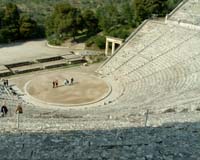 Atlanta GA (SPX) Apr 09, 2007 As the ancient Greeks were placing the last few stones on the magnificent theater at Epidaurus in the fourth century B.C., they couldn't have known that they had unwittingly created a sophisticated acoustic filter. But when audiences in the back row were able to hear music and voices with amazing clarity (well before any theater had the luxury of a sound system), the Greeks must have known that they had done something very right because they made many attempts to duplicate Epidaurus' design, but never with the same success. Researchers at the Georgia Institute of Technology have pinpointed the elusive factor that makes the ancient amphitheater an acoustic marvel. It's not the slope, or the wind - it's the seats. The rows of limestone seats at Epidaurus form an efficient acoustics filter that hushes low-frequency background noises like the murmur of a crowd and reflects the high-frequency noises of the performers on stage off the seats and back toward the seated audience member, carrying an actor's voice all the way to the back rows of the theater. The research, done by acoustician and ultrasonics expert Nico Declercq, an assistant professor in the Woodruff School of Mechanical Engineering at Georgia Tech and Georgia Tech Lorraine in France, and Cindy Dekeyser, an engineer who is fascinated by the history of ancient Greece, appears in the April issue of the Journal of the Acoustics Society of America. While many experts speculated on the possible causes for Epidaurus' acoustics, few guessed that the seats themselves were the secret of its acoustics success. There were theories that the site's wind - which blows primarily from the stage to the audience - was the cause, while others credited masks that may have acted as primitive loudspeakers or the rhythm of Greek speech. Other more technical theories took into account the slope of the seat rows. When Declercq set out to solve the acoustic mystery, he too had the wrong idea about how Epidaurus carries performance sounds so well. He suspected that the corrugated, or ridged, material of the theater's limestone structure was acting as a filter for sound waves at certain frequencies, but he didn't anticipate how well it was controlling background noise. "When I first tackled this problem, I thought that the effect of the splendid acoustics was due to surface waves climbing the theater with almost no damping," Declercq said. "While the voices of the performers were being carried, I didn't anticipate that the low frequencies of speech were also filtered out to some extent." But as Declercq's team experimented with ultrasonic waves and numerical simulations of the theater's acoustics, they discovered that frequencies up to 500 Hz were held back while frequencies above 500 Hz were allowed to ring out. The corrugated surface of the seats was creating an effect similar to the ridged acoustics padding on walls or insulation in a parking garage. So, how did the audience hear the lower frequencies of an actor's voice if they were being suppressed with other background low frequencies? There's a simple answer, said Declercq. The human brain is capable of reconstructing the missing frequencies through a phenomenon called virtual pitch. Virtual pitch helps us appreciate the incomplete sound coming from small loudspeakers (in a laptop or a telephone), even though the low (bass) frequencies aren't generated by a small speaker. The Greeks' misunderstanding about the role the limestone seats played in Epidaurus' acoustics likely kept them from being able to duplicate the effect. Later theaters included different bench and seat materials, including wood, which may have played a large role in the gradual abandonment of Epidaurus' design over the years by the Greeks and Romans, Declercq said. Email This Article