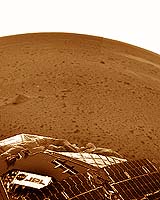 Pasadena (JPL) Jan 05, 2004 NASA has begun receiving high resolution color photographs of Mars from the Spirit rover and is processing them for release sometime later Monday, officials here said. Scientists chalked up several new successes on the robot's first full day on Mars, including deployment of an antenna to transmit data directly to Earth and testing of instruments ahead of three months exploring the Martian surface. Shortly after landing on Mars overnight Saturday to Sunday, Spirit began transmitting low-resolution black and white images taken with its navigational camera, giving the world a first glimpse at the rocky plain where it came to a rest in the Gusev crater, about 15 degrees south of the Martian equator. Twenty-four hours later, NASA is receiving high-resolution, IMAX-quality color images at Jet Propulsion Laboratory here. Technicians were to spend the night of Sunday to Monday putting together a mosaic of images to produce 360-degree views, the best photographs ever taken on Mars, for release later in the day. The images were taken by Spirt's panoramic camera, mounted on a vertical telescopic arm, which essentially gives researchers a window onto Mars. The camera will help mission managers choose which soils and rocks to analyze and decide where to guide the robot once it is put in motion.